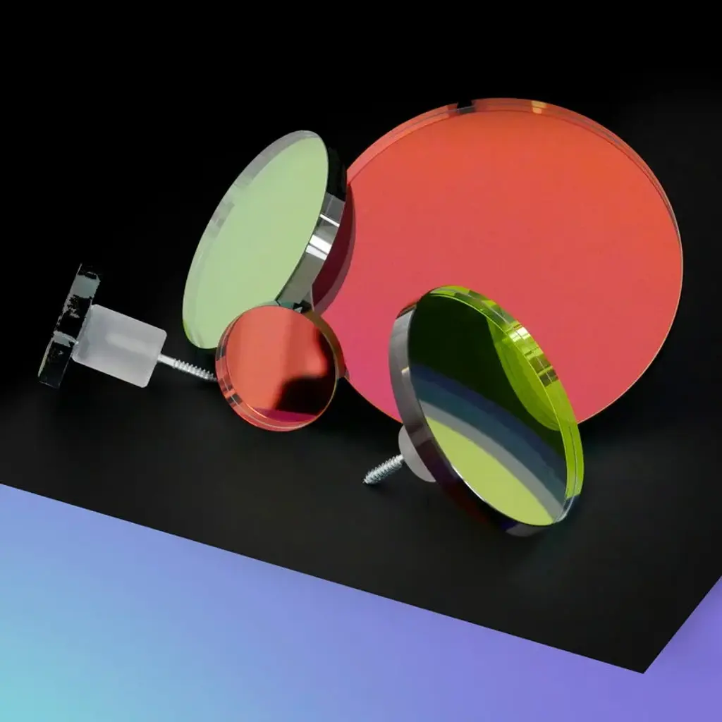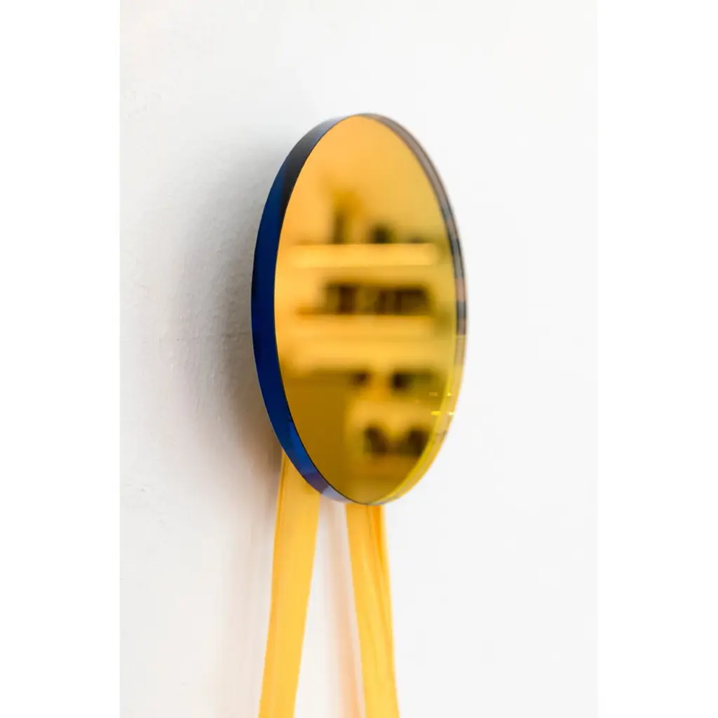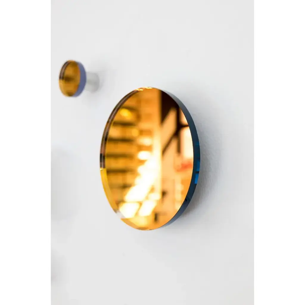 Fundamental Berlin's Regenbogen wall hook shimmers in all the colors of the rainbow when light hits its shiny surface. The round hook holds jackets, bags, jewelry and other accessories, but the reflective surface also makes it a great option for a small mirror in the hallway or bathroom. Try combining several Regenbogen hooks of different sizes to create a glowing composition to brighten up your wall! The wall hooks are made of heavy lead crystal mirror backed with a special chromatic foil to highlight the colors of the spectrum.
