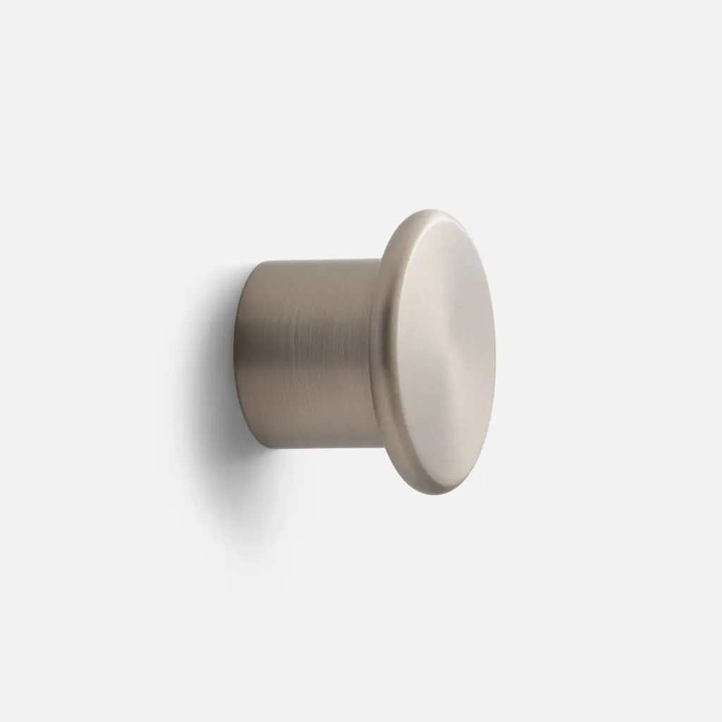 Inspired by vintage furniture pulls, the Remy Hook has a clean and considered cylindrical form for a timeless look. Each hook is made of solid brass or powdercoated aluminum that lends a sturdy and secure place to hang your hats, coats, bags, etc. Available in your pick of two sizes.