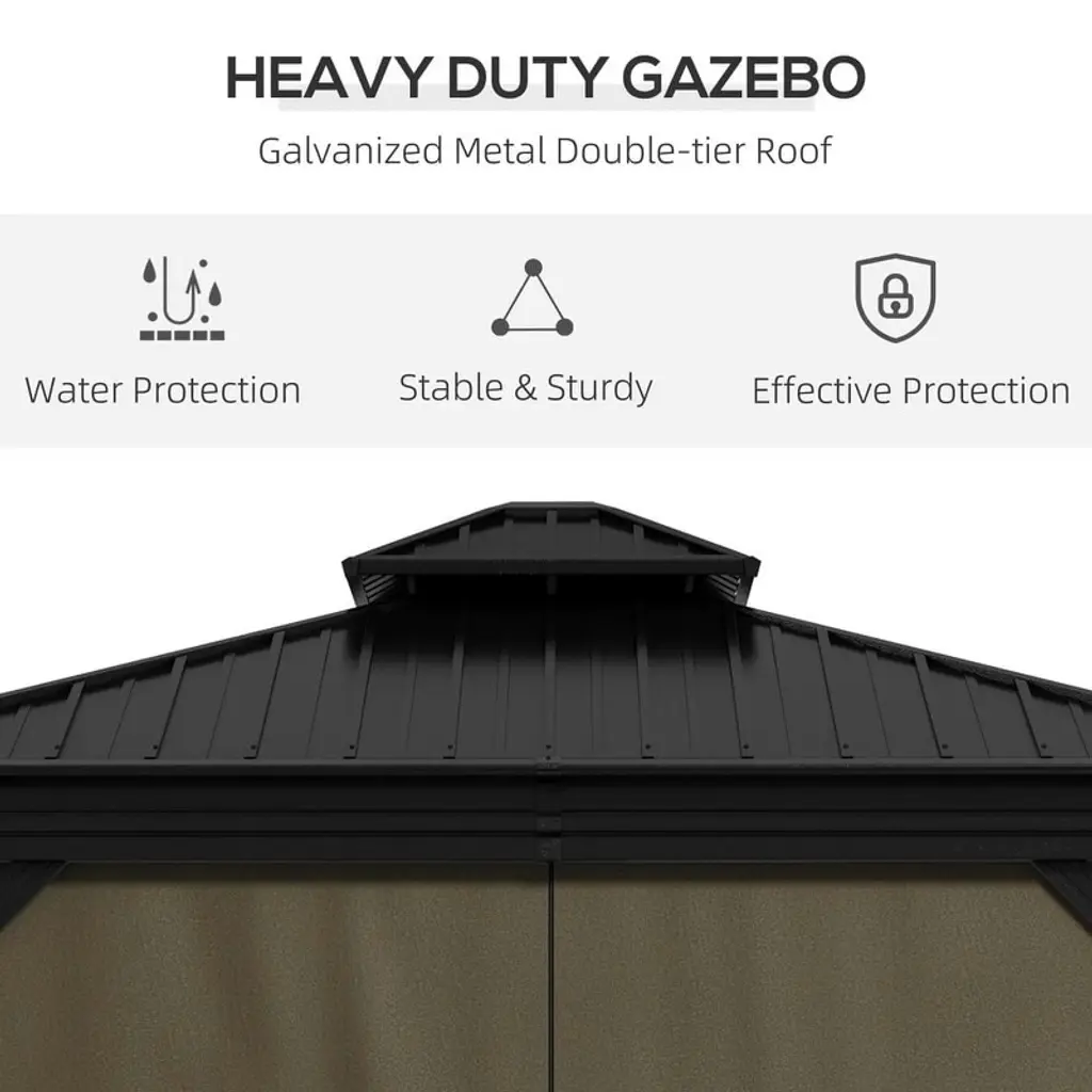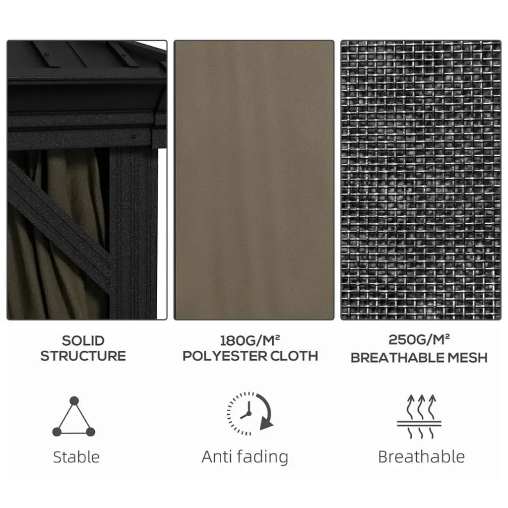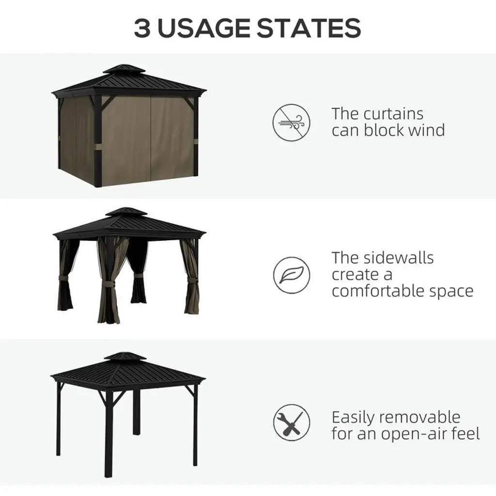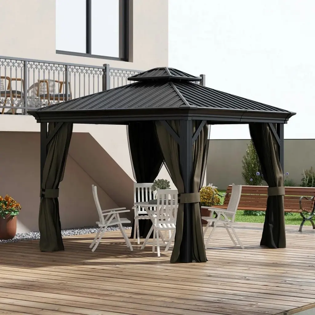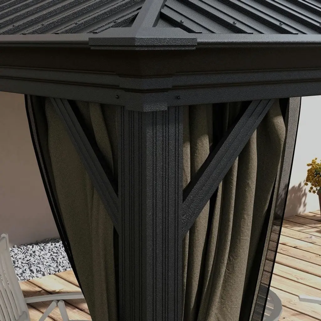 Discover the perfect addition to your outdoor space with our 10' x 10' Hardtop Gazebo, a stunning Pavilion Gazebo with Curtains and Nettings. Crafted from high-quality aluminum, this gazebo is designed for both gardens and patios, providing an elegant and durable solution for any outdoor setting. The dark brown finish adds a touch of sophistication to any landscape, making it the perfect choice for those who want to elevate their outdoor living experience. Our gazebo features a 10' x 10' frame, ensuring ample space for relaxation or entertaining guests. With its sturdy aluminum construction and reinforced netting, this gazebo is built to last, weathering even the most challenging elements. The curtains and netting provide privacy and protection from the elements, while the hooks on the sides make it easy to hang outdoor gear or decorations. Whether you're looking to add a touch of elegance to your garden or create a cozy spot for reading in your patio, our 10' x 10' Hardtop Gazebo is the perfect solution. Order now and experience the ultimate in outdoor living! Resenkos Outdoor Garden Gazebo, Sunshade Gazebo Canopy,10' x 10' Hardtop Gazebo, Pavilion Gazebo with Curtains, Nettings, Hooks, Dark Brown
