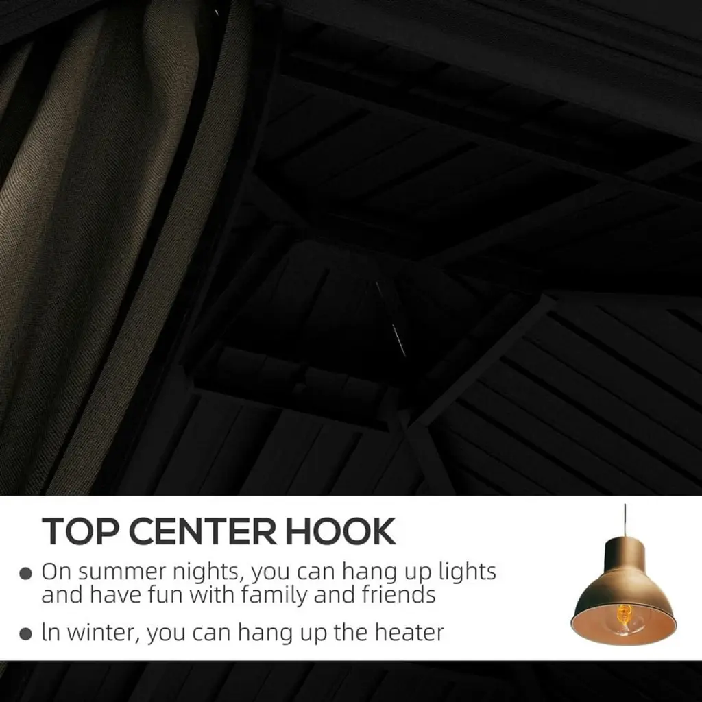 Resenkos Outdoor Garden Gazebo, Sunshade Gazebo Canopy,10' X 10' Hardtop Gazebo, Pavilion Gazebo With Curtains, Nettings, Hooks, Dark Brown