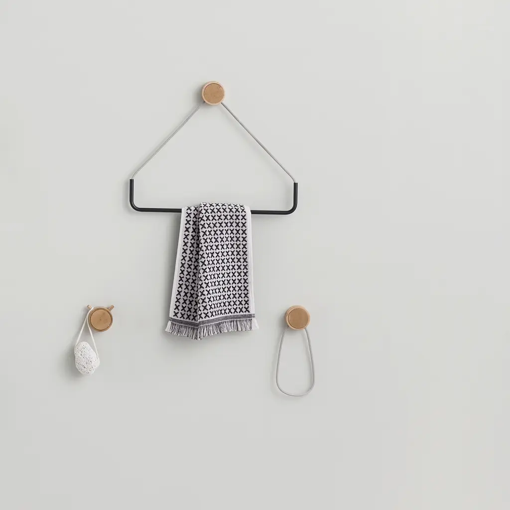 The coat hook from the RING collection, crafted from natural beechwood, boasts a gracefully rounded shape. It’s not just perfect for hanging your clothes, but also serves as an ideal spot for dish towels, bags, and various accessories. This versatile piece adds both style and elegance while keeping your space neat and organized. The design, in keeping with the rest of the collection, is characterized by its minimalism and refined aesthetic. The coat hook features two small hooking points, making it suitable for garments, towels, and dish towels. It’s an ideal choice for those who appreciate attention to detail. Furthermore, it can be seamlessly integrated with other items from the same collection, all designed by the talented Monica Graffeo. You’ll find the wall-fixing cylinder available in beechwood as well as aluminum, painted in matte black, matte white, and chrome finishes. If you prefer not to puncture your walls, there’s also an adhesive version included in the package, complete with both screw and double-sided adhesive fixing options for your convenience.