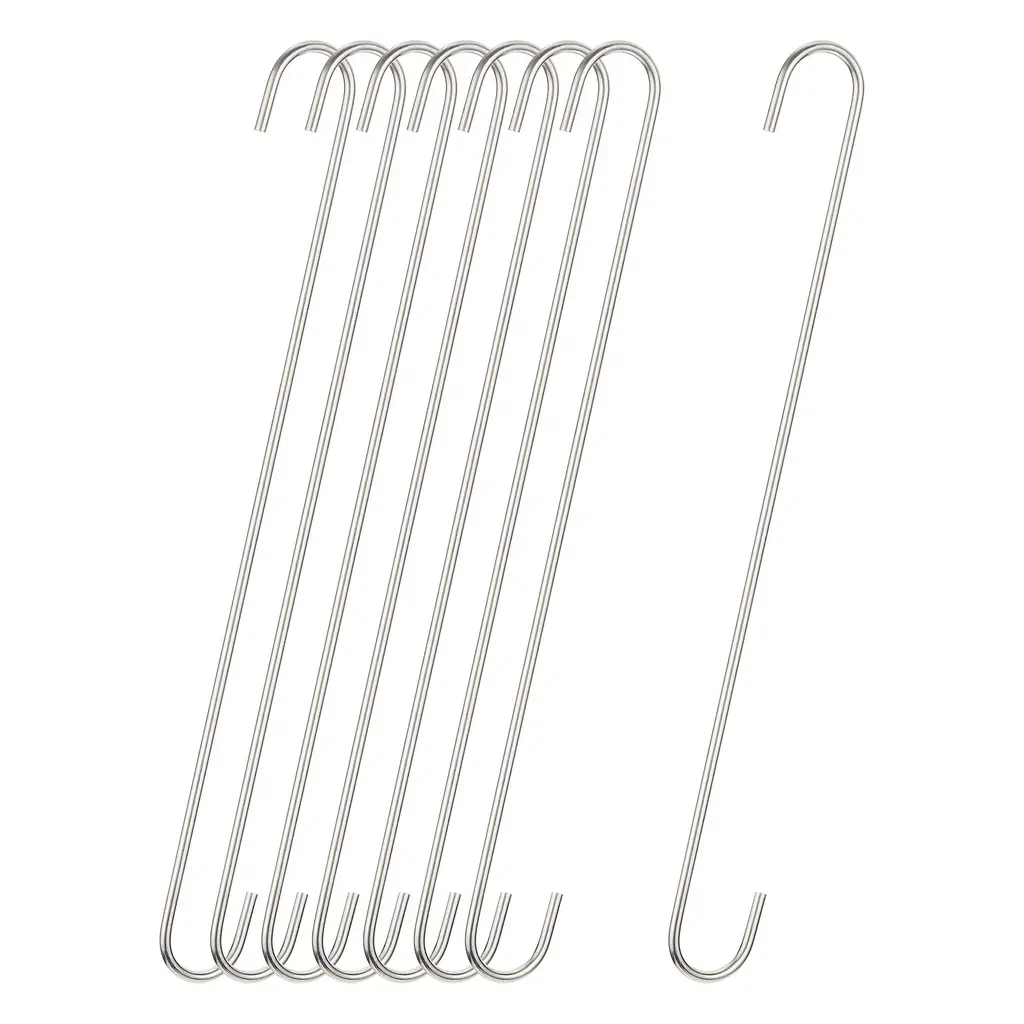 S Hanging Hooks, 16"(400mm) Extra Long Steel Hanger, Matt Silver, 8Pcs - Silver - Silver