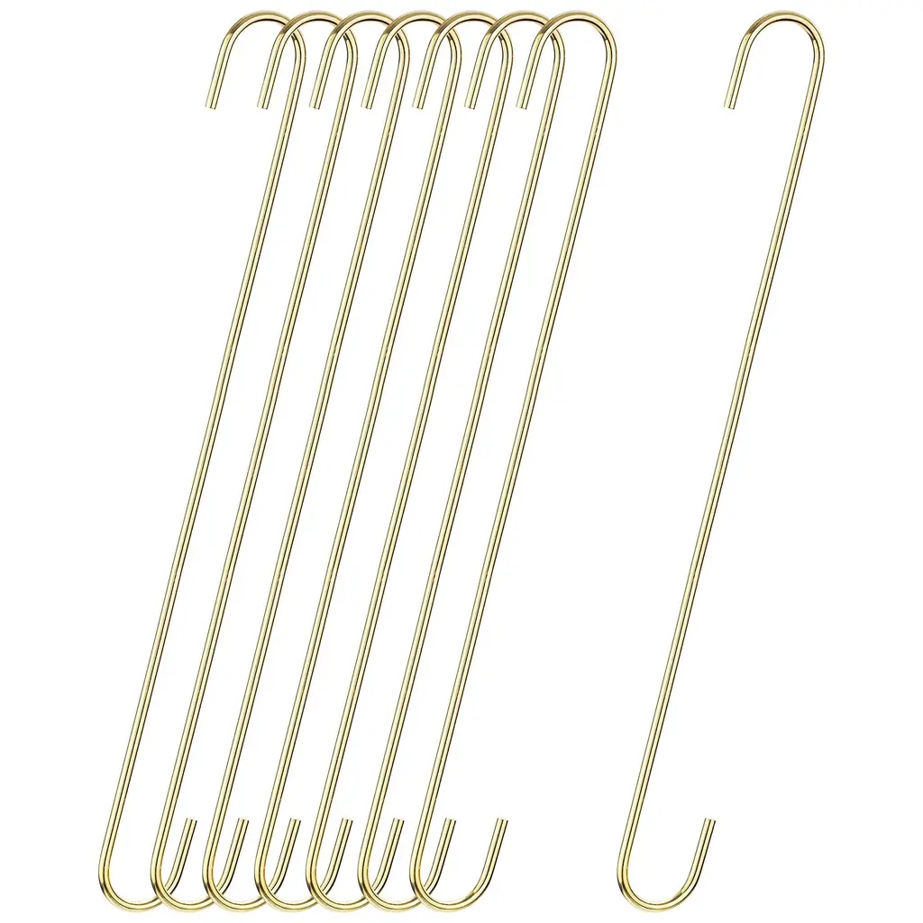 S Hanging Hooks, 16inch(400mm) Extra Long Steel Hanger, Gold Tone, 8Pcs - Gold Tone - Gold Tone
