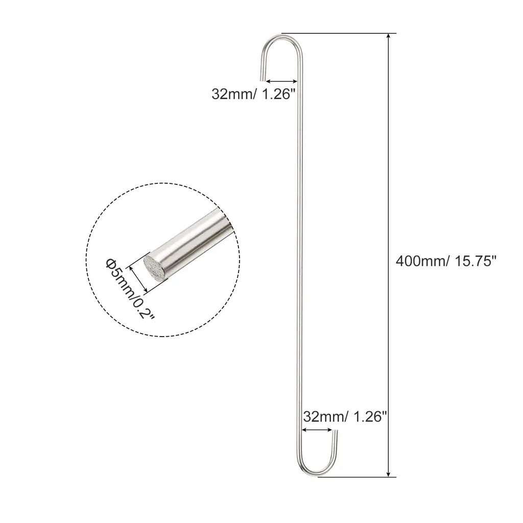[What You Get] - You will get 2pcs matt silver S shape hanging hooks which fits max 32mm pole: Length: 400mm/ 15.75inch; Thickness: 5mm/ 0.2inch; Opening Diameter: 32mm/ 1.26inch[Material & Design] - These metal hooks are made of carbon steel with a smooth painted surface, sturdy and durable, not easy to get rust or erosion.Designed with S shapes streamlined and extra-long, integrally formed, it can withstand lots of force without deformation or rupture[Easy to Use] - Good organizing tool. S-hook can easily hang on poles, shelves, bars, or ropes without the need for nails, screws, or adhesives. You can hang heavy objects without worrying about them falling[Multiple Use Tool] - These S hooks can be used on different occasions indoor or outdoor like kitchen, garden, bathroom, closet, garage, home or office, and more. They are not limited to applying in a specific area. You can hang kitchen utensils, bath supplies, plants, clothes, shoes and so on which is convenient and saves space[Note] - Its load-bearing limit is approximately up to 30 kg/ 66lb. Please confirm the size of the hook and ensure the applying places before buyingFeatures:Well Material - These metal hooks are made of carbon steel with a smooth painted surface, sturdy and durable, not easy to get rust or erosion.S Shape Design - Designed with S shapes streamlined and extra-long, integrally formed, it can withstand lots of force without deformation or rupture.Efficient Storage Solution - These S hooks are a simple and brilliant storage solution for hanging anything. Good organizing or decorating tool.Easy to Use - S-hook can easily hang on poles, shelves, bars, or ropes without the need for nails, screws, or adhesives. You can hang heavy objects without worrying about them falling.Multi-purposed:These S hooks can be used on different occasions indoor or outdoor like kitchen, garden, bathroom, closet, garage, workshop, home or office, and more. They are not limited to applying in a specific area.Application:They can be used for a number of things: You can use it to hang kitchen utensils, spoons, pots, or cups in the kitchen; You can hang towels, brushes, clothes, or other tools in your bathroom; You can hang flower pots, plants, or gardening tools in the garden; You can also hang clothes, shoes in the closet; In the garage for organizing tools.Note:Please confirm the size of the hook and ensure the applying places before buying.Specification:Color: Matt SilverMaterial: Carbon SteelLength: 400mm/ 15.75inchThickness: 5mm/ 0.2inchOpening Diameter: 32mm/ 1.26inchPackage Content:2 x Metal S Hooks