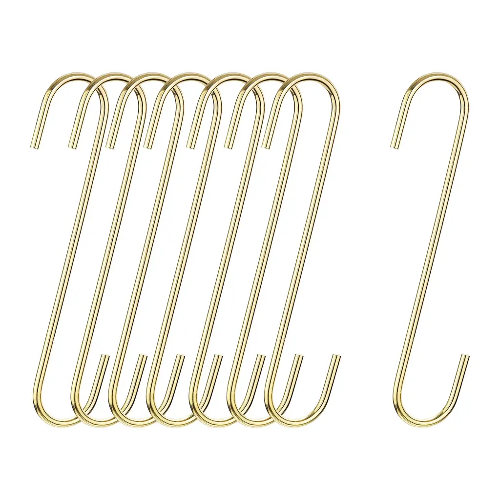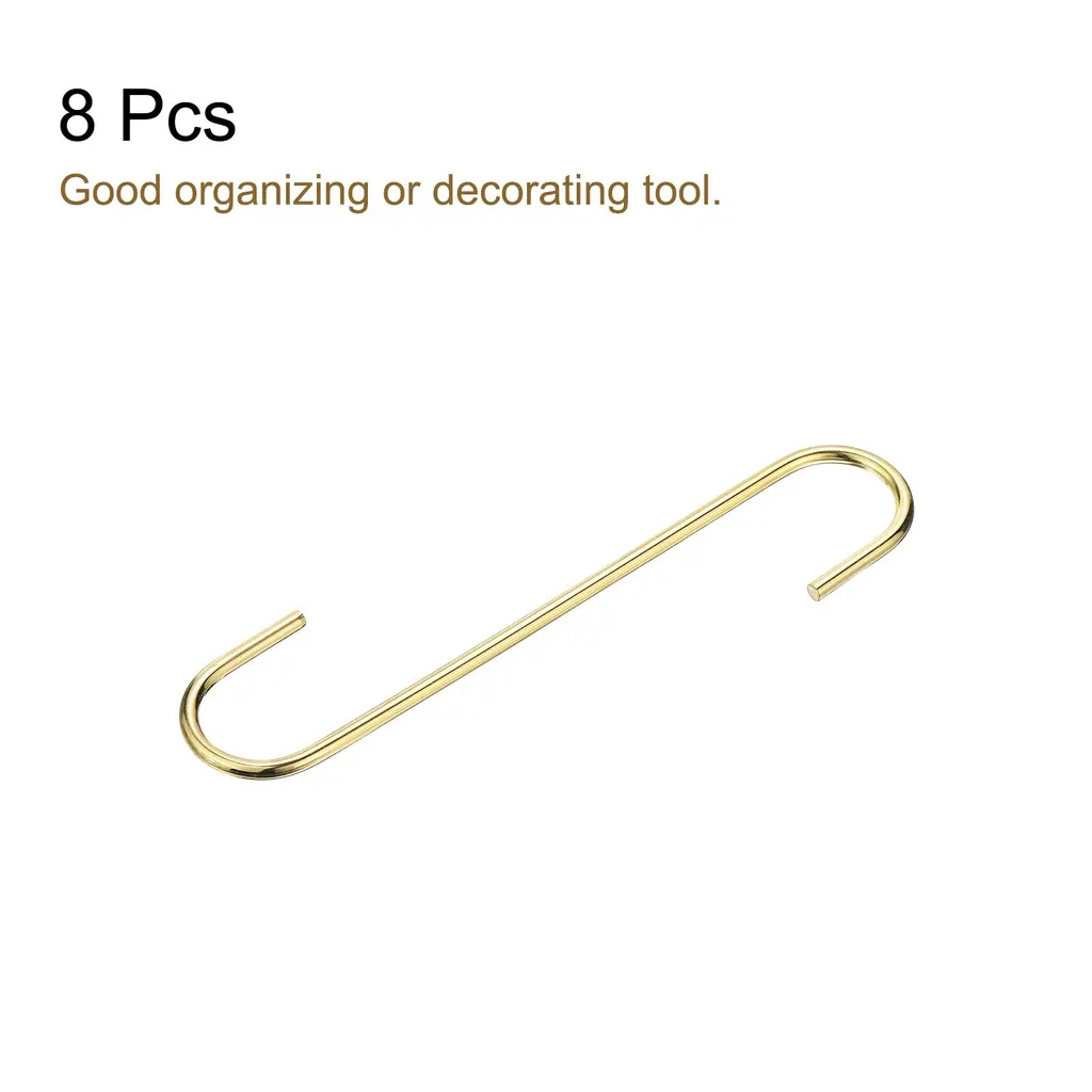 S Hanging Hooks, 8Inch(200mm) Extra Long Steel Hanger, Gold Tone, 8Pcs - Gold Tone - Gold Tone