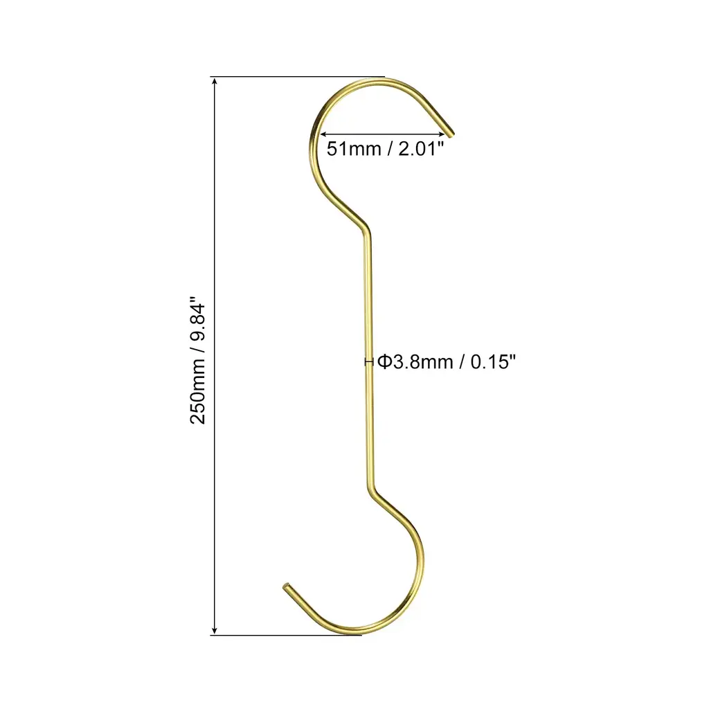 Good Material: Our Double Circle S Hooks are crafted from good stainless steel. This material offers excellent durability and resistance to harsh environmental conditions. The stainless steel construction ensures long-lasting performance, making these hooks suitable for both indoor and outdoor use.Six Different Sizes: We offer our Double Circle S Hooks in six different sizes to accommodate various hanging requirements. Whether you need to hang plants, kitchen utensils, clothing, or other items, we have the perfect size for your specific needs.Easy to Use: Our Double Circle S Hooks are designed for convenience and ease of use. The double-circle design provides a secure hold, preventing items from slipping off the hook. The S shape allows for easy attachment and removal, easily hanging everything on racks, and rods, making it simple to hang your belongings as needed.Scope of Application: Our S Hooks find wide applications in homes, gardens, workshops, and more. They are suitable for hanging plants, kitchen utensils, tools, towels, and various other items. The versatility of these hooks makes them a practical solution for organizing and maximizing space in a variety of setting.Specification:Length: 150mm / 5.91''Opening Width: 51mm / 2.01''Wire Diameter: 3.8mm / 0.15''Material: Stainless SteelColor: SilverPackage Content: 6Pcs x S Hooks