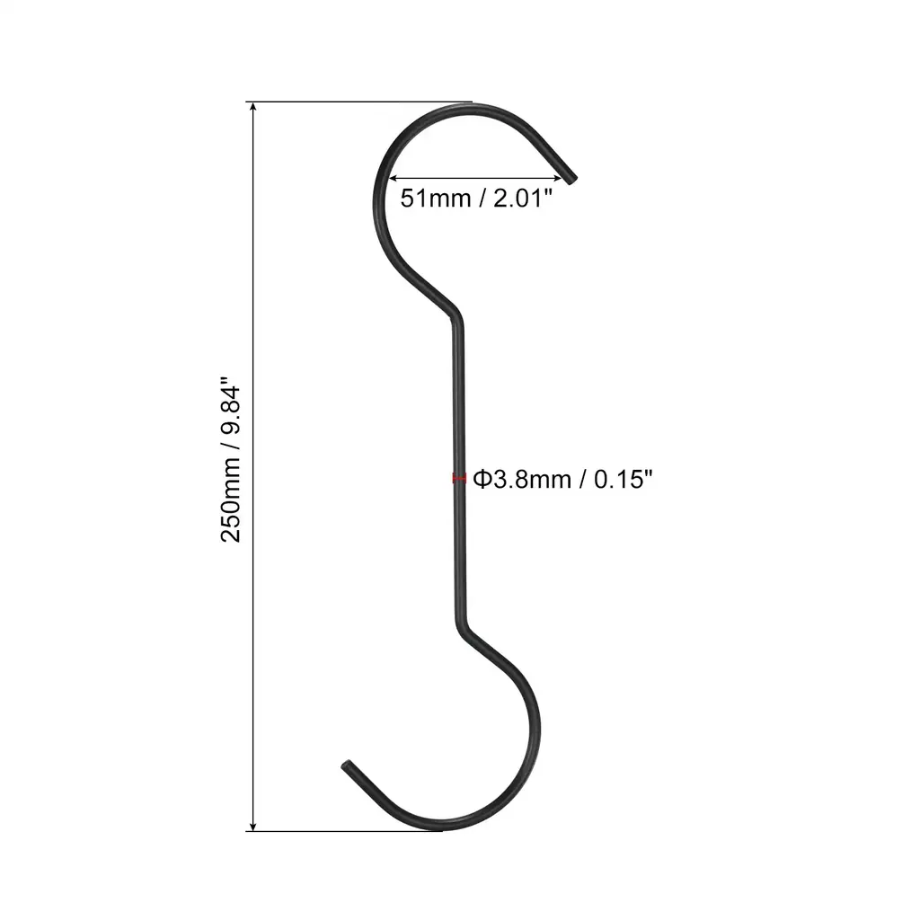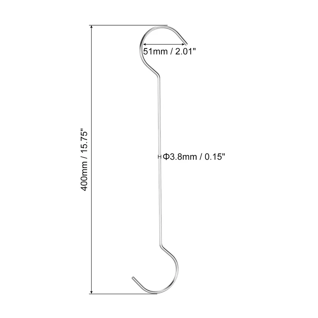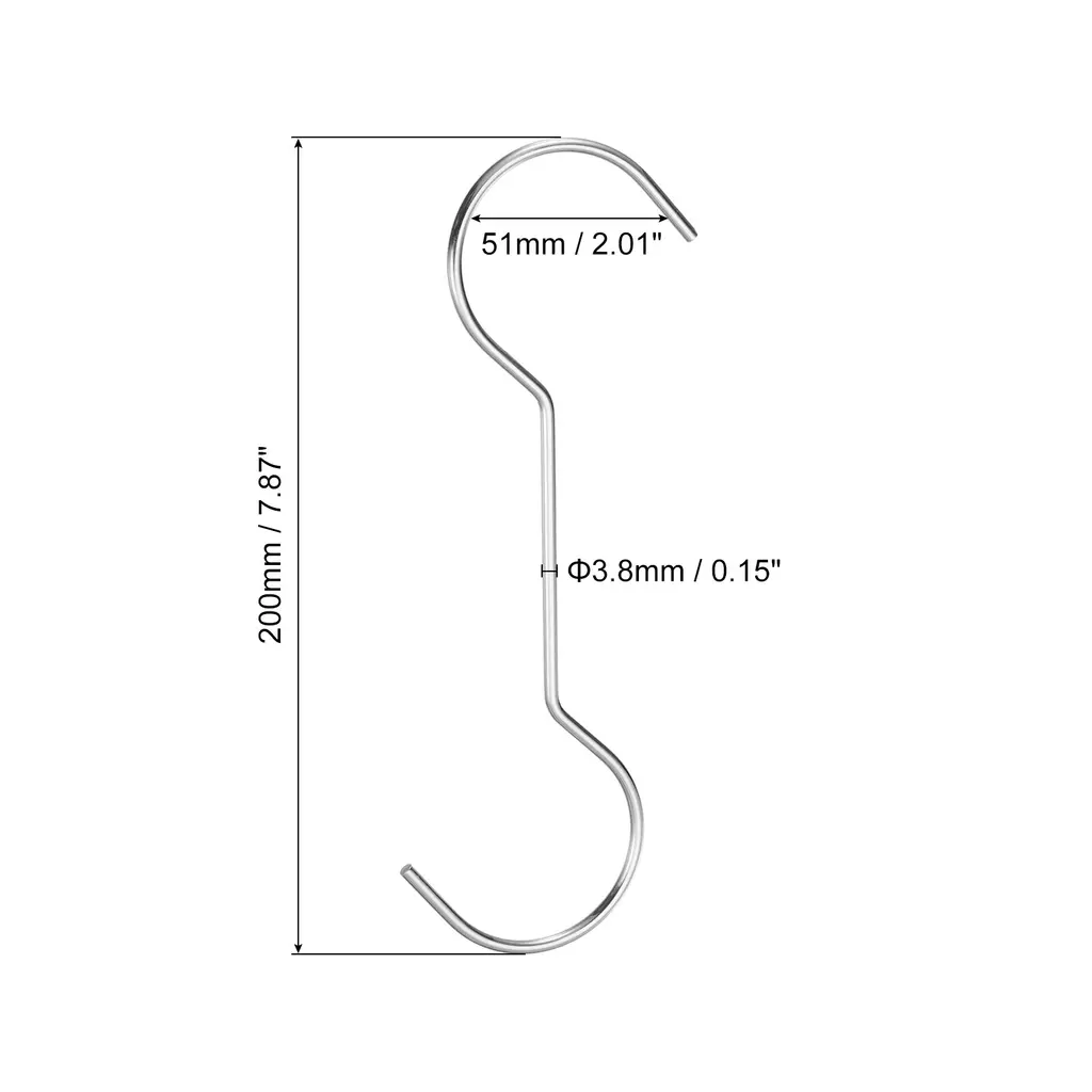 Good Material: Our Double Circle S Hooks are crafted from good stainless steel. This material offers excellent durability and resistance to harsh environmental conditions. The stainless steel construction ensures long-lasting performance, making these hooks suitable for both indoor and outdoor use.Six Different Sizes: We offer our Double Circle S Hooks in six different sizes to accommodate various hanging requirements. Whether you need to hang plants, kitchen utensils, clothing, or other items, we have the perfect size for your specific needs.Easy to Use: Our Double Circle S Hooks are designed for convenience and ease of use. The double-circle design provides a secure hold, preventing items from slipping off the hook. The S shape allows for easy attachment and removal, easily hanging everything on racks, and rods, making it simple to hang your belongings as needed.Scope of Application: Our S Hooks find wide applications in homes, gardens, workshops, and more. They are suitable for hanging plants, kitchen utensils, tools, towels, and various other items. The versatility of these hooks makes them a practical solution for organizing and maximizing space in a variety of setting.Specification:Length: 150mm / 5.91''Opening Width: 51mm / 2.01''Wire Diameter: 3.8mm / 0.15''Material: Stainless SteelColor: SilverPackage Content: 6Pcs x S Hooks
