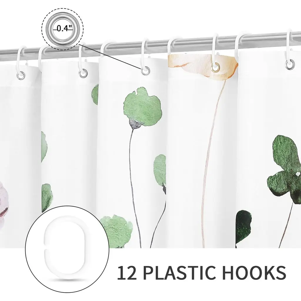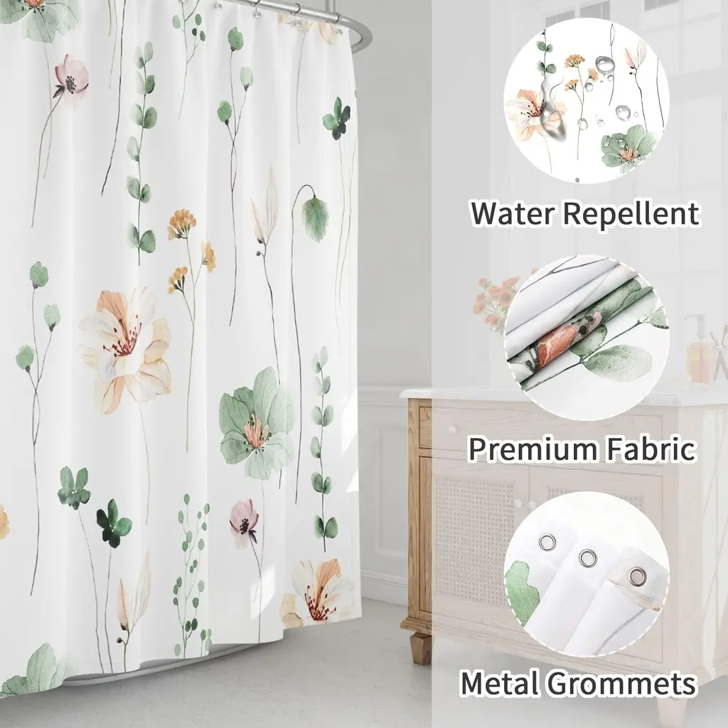 Sage Green Beige Flower Shower Curtain with Hooks 72x72 Inch