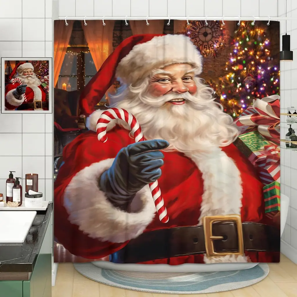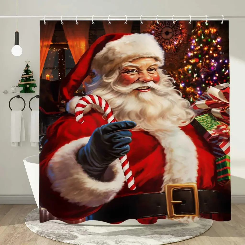 Spread holiday cheer with this Santa Claus Shower Curtain, measuring 72" x 72". Featuring a vibrant red design showcasing a cheerful Santa Claus, this curtain adds a festive touch to your bathroom decor. Made from high-quality, water-resistant fabric, it not only enhances your holiday ambiance but also keeps your bathroom floor dry. The set includes matching hooks for easy installation, making it a hassle-free addition to your holiday decorations. Perfect for creating a joyful and cozy atmosphere, this Santa Claus shower curtain is a delightful way to celebrate the spirit of Christmas!