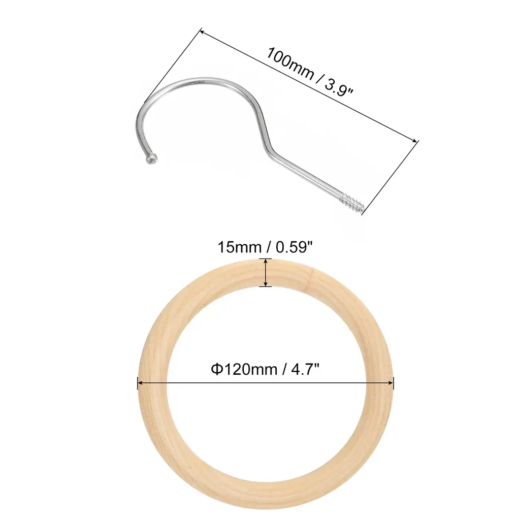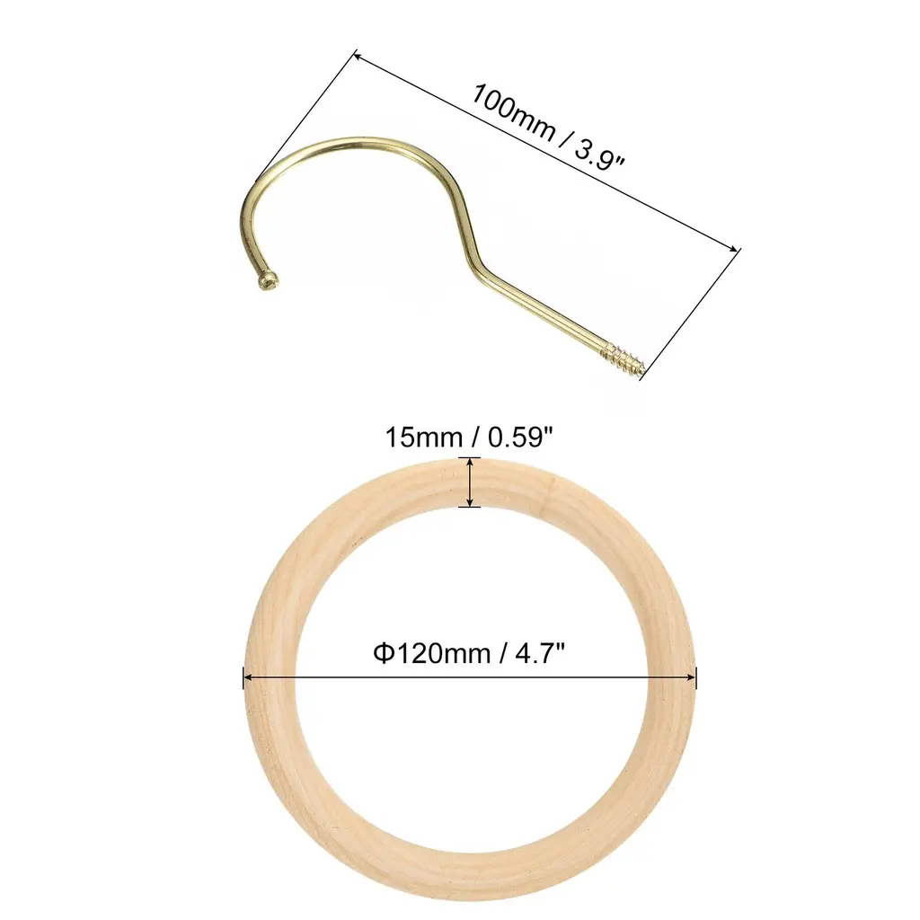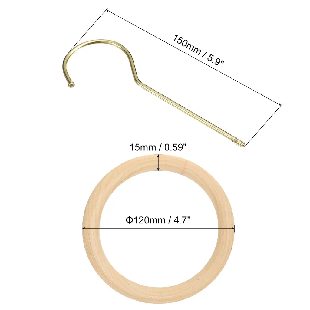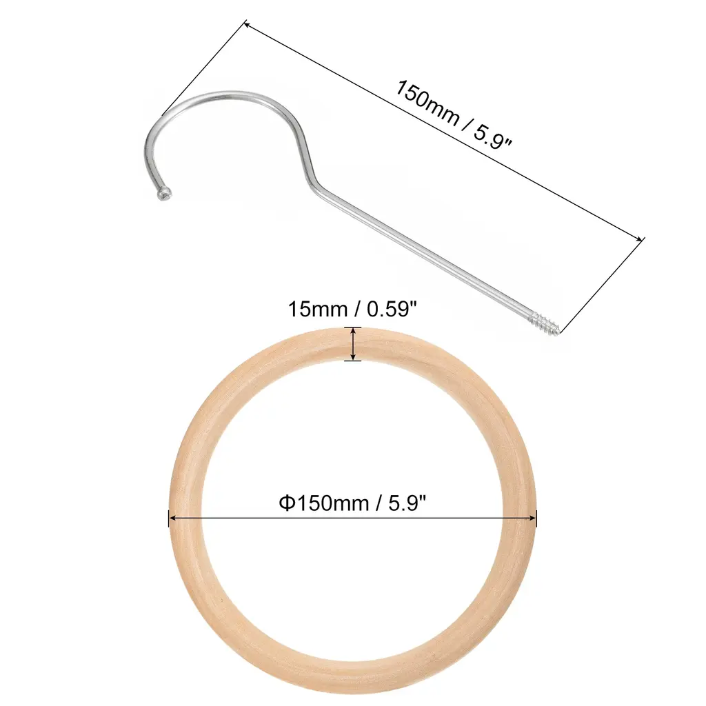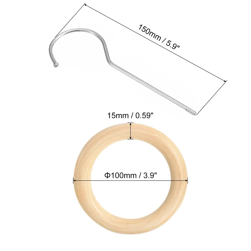 Description:Made of premium wood and metal material that ensures its durability and longevity, wooden rings with a smooth surface instead of having huge knots, providing a good decorative effect, and the hook is not easy to rust or corrosion.The hanging hook is designed to maximize your closet space while keeping it neat, visible and clean. Keep your scarf from wrinkling easily and can help you quickly find what you need. The sophisticated wooden circle is also perfect for displaying your collection of scarves, ties and more.Easy to install and convenient to use, with a long hook to hang over a closet rod or hook, also suitable to hang clothes hanger, belts, ties, etc and closing for sturdy hanging with no worry about falling.The closet organizer hooks are commonly used in the home, closet, bathroom, clothes shop, etc. The hook can be utilized for hanging and organizing various items, including clothes, pants, ties, scarves, shawls, belts, and more.Specification:Material: Wood; MetalWood Ring Diameter: 100mm / 3.9-inchWood Ring Thickness: 15mm / 0.59-inchHook Length: 100mm / 3.9-icnhPackage Content: 1Pcs x Scarf Ring Hanger