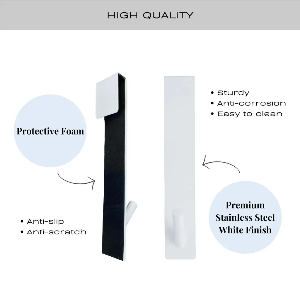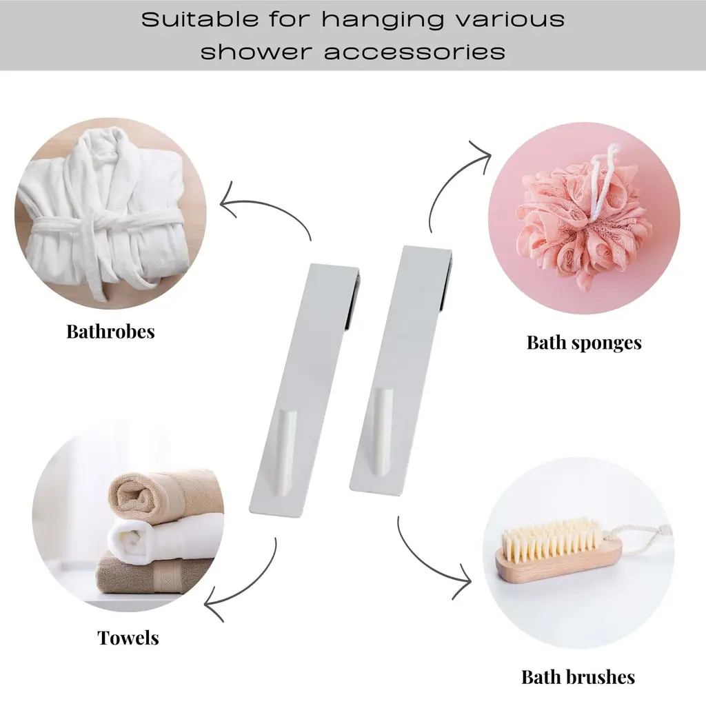 Shower Door Hooks Easy To Install For Frameless Glass Shower Doors - 7"l X 1.3"w X 0.10"d - White