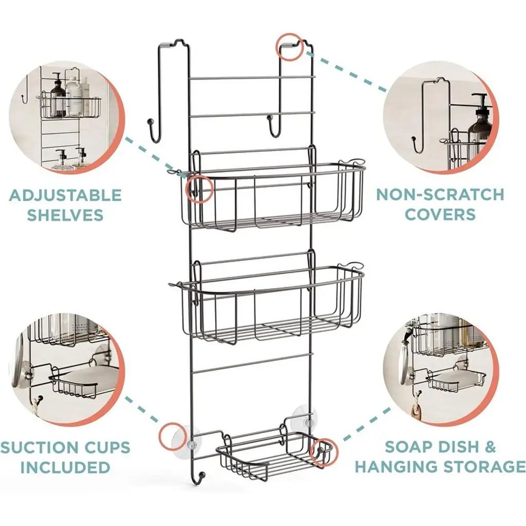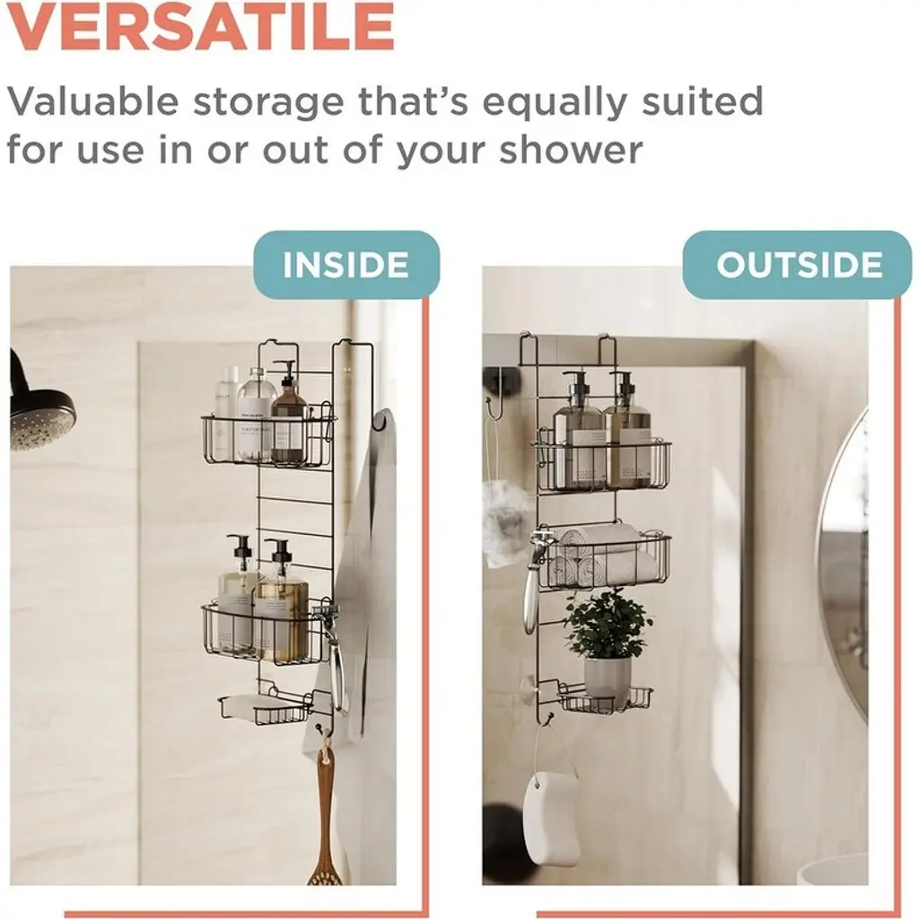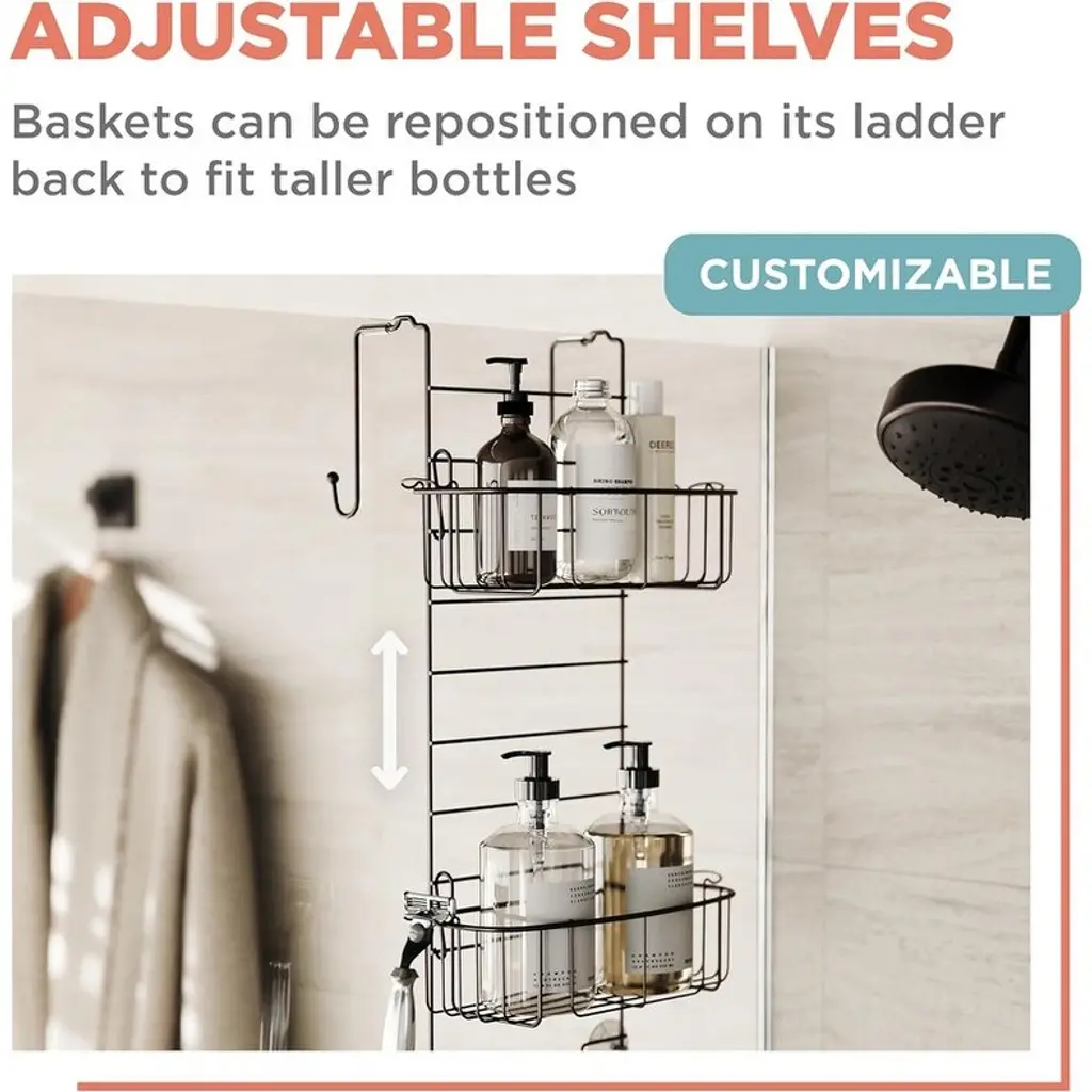 Shower Over Door Hanging Organizer, Stainless Steel Shelf With 2 Shelves And Built-In Hooks, Bathroom Organizer - Heritage Bronze/number Of3