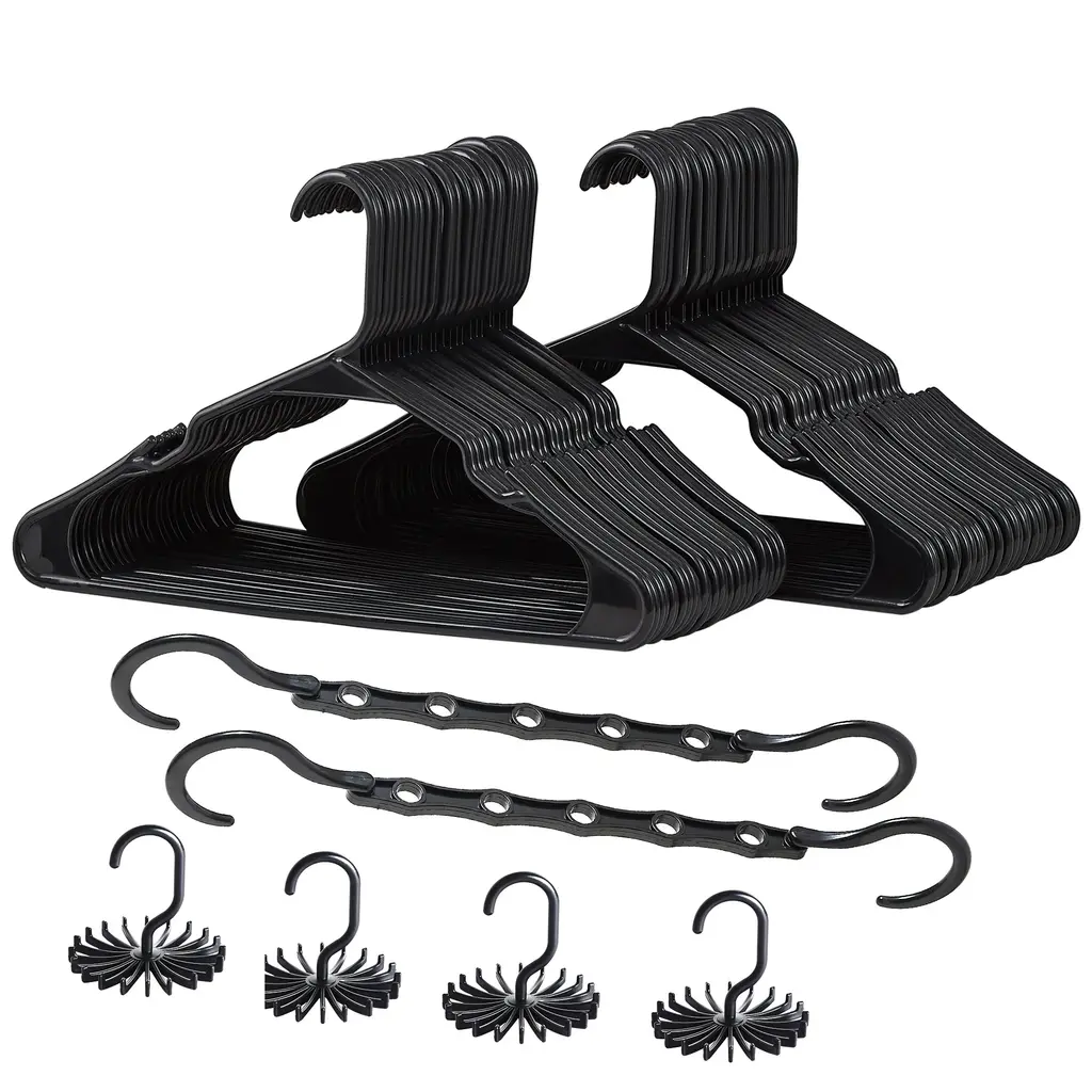 Simplify 12pk Black Flat Metal Hanger With Chrome Hook: Multipurpose Clothes Hangers For Pants, Shirts, Dresses