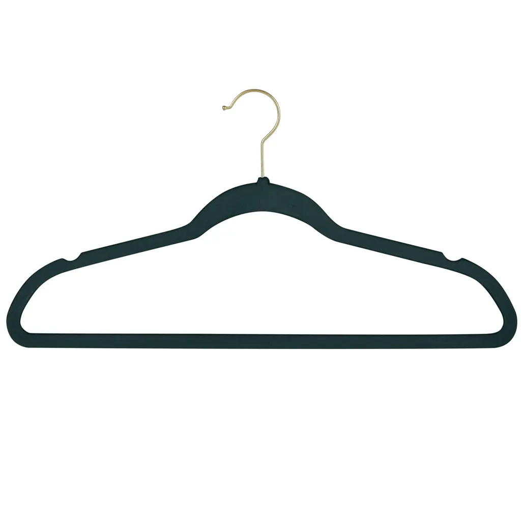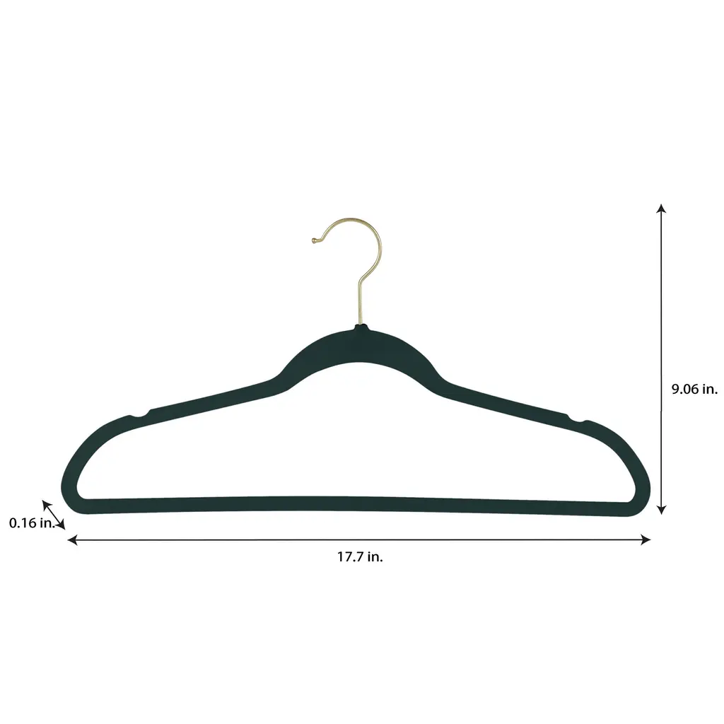Simplify 25 Pack Slim Velvet Gold Hook Hangers - 17.7" X 9" - Emerald