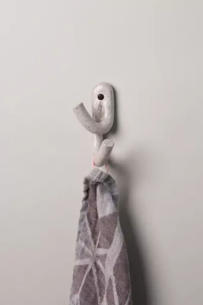 When wall space is tight, Leggy Crossed is there to maximize it. A double hook to hold your two favorite of everything. Available in speckled or black. **Content + Care** \-Ceramic stoneware \- Wipe clean with a damp cloth \- Designed, handmade, and shipped from Brooklyn, NY **Size + Fit** \- Each piece is unique and varies slightly in size \- 4.25" L x 3" W x 3" D