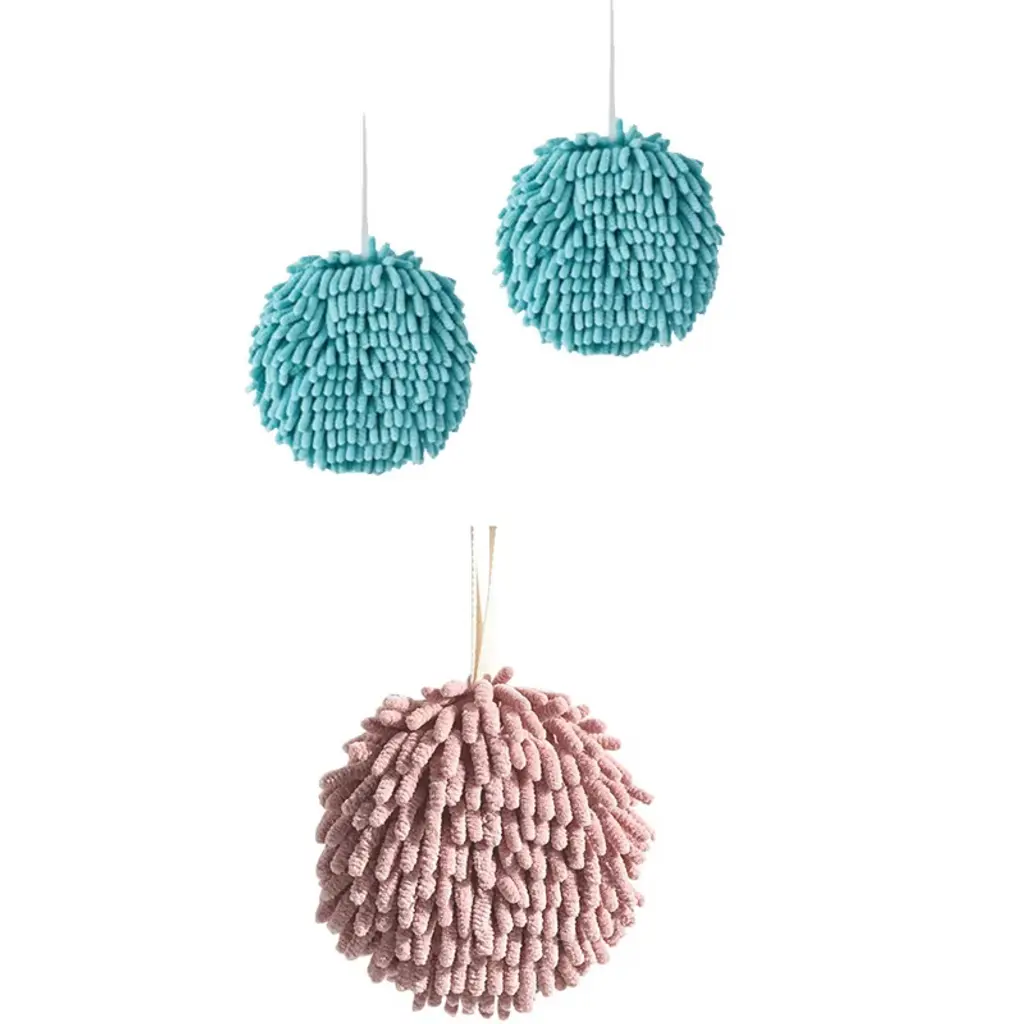 Soft Absorbent Fluffy Chenille Ball Hand Towels, Set Of 2 Fuzzy Decorative Towel With Wall Hook For Bathroom 6" X 6" - 6" X 6" - Red