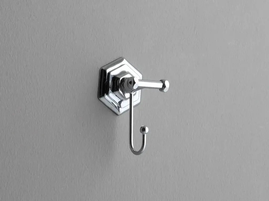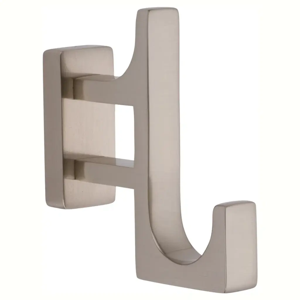 Sometimes it's the small things that pull a room together. That's why we've designed a hardware collection with modern silhouettes, clean lines and a touch of tradition to give your bathroom that perfect finishing touch. Rounded corners and smoothed edges soften the minimalist design of the towel hook made of brass finished in brushed nickel. The hook's mix of square and rectangular shapes gives it a geo-forward look that's bold and contemporary. The hook is ready to mount on the wall with included hardware.