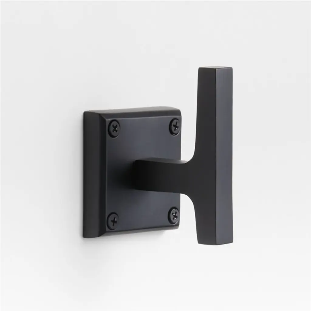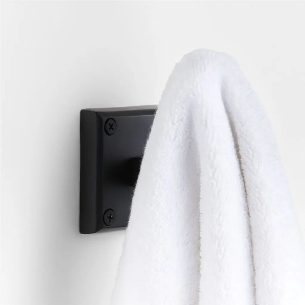 Sometimes it's the small things that pull a room together. That's why we've designed a hardware collection with modern silhouettes, clean lines and a touch of tradition to give your bathroom that perfect finishing touch. Rounded corners and smoothed edges soften the minimalist design of the towel hook made of matte black-finished brass. The hook's mix of square and rectangular shapes gives it a geo-forward look that's bold and contemporary. The hook is ready to mount on the wall with included hardware.