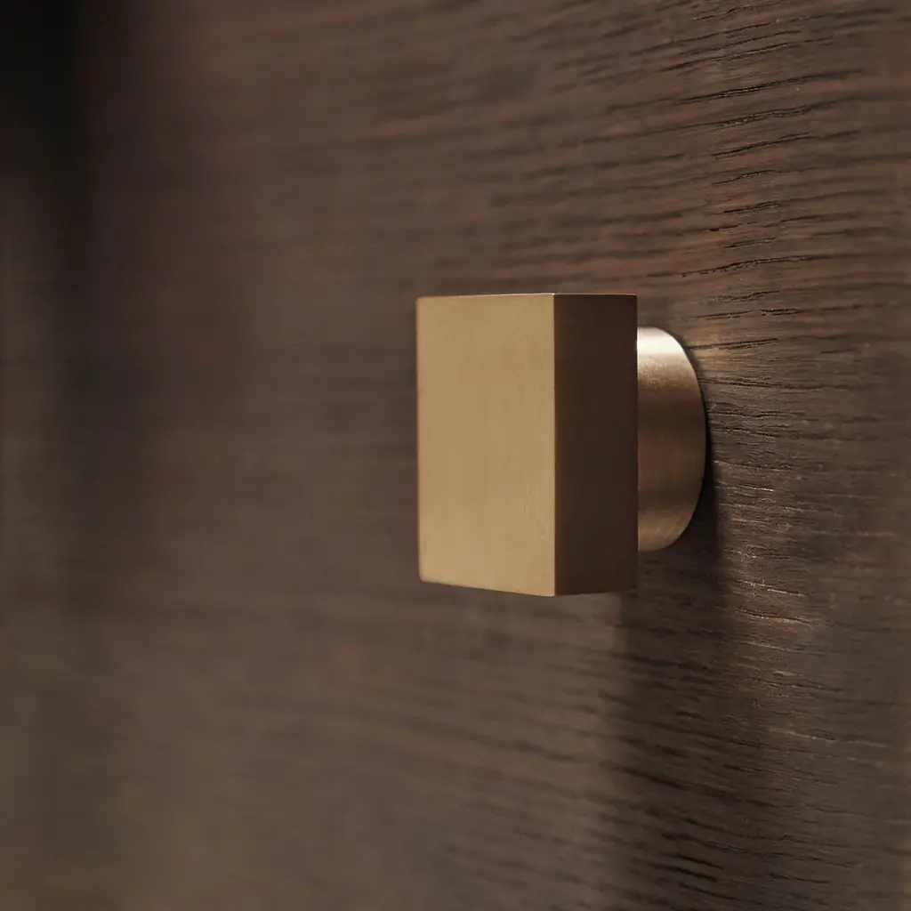 The Square Hook is a versatile accessory crafted from cast brass, designed to combine the simplicity of geometric forms with functional utility. This elegant piece merges the forms of a cube and a cylinder, resulting in a monolithic expression that is both timeless and contemporary. Its robust construction and sleek design make it an enduring addition to any decor. Use it as a hook to hang towels, robes, or accessories, or as a handle for cabinets and drawers, enhancing any kitchen, bathroom, or living space. Use as hook or knob. Screws for both options included.