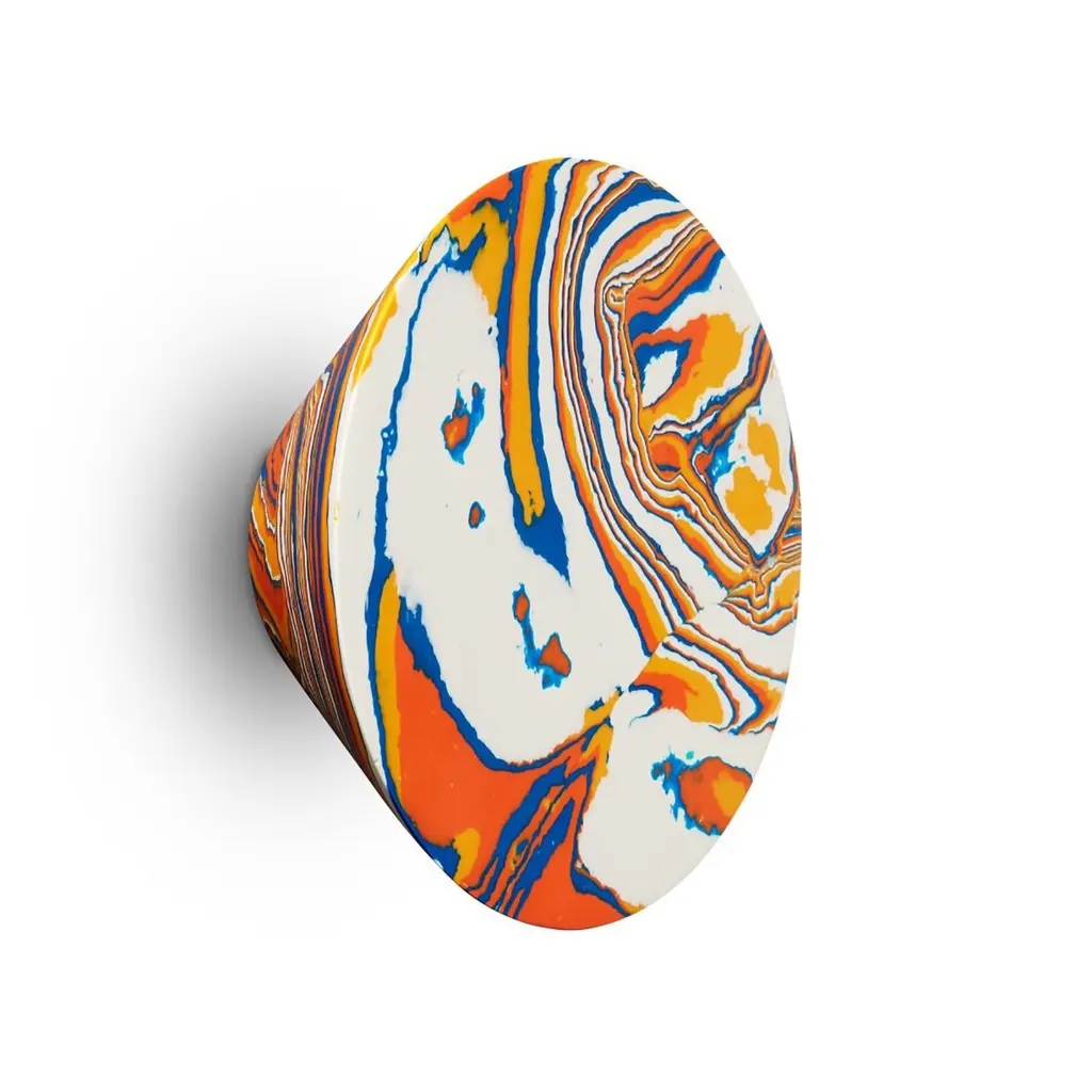 Swirl, a mysterious new material that resembles 3D marbled paper yet has the weight of stone. Our new Swirl hooks celebrate the little details that are often missed, the hidden bits of functionality that are often the first touch point in a space yet go unnoticed. A series of small and large hooks made from powdered residue from the marble industry, mixed with pigment and resin to create a variety of surprising colour combinations. Substantial in weight, smooth in texture and bold in pattern, Swirl will inject a fresh pop sensibility into any setting.