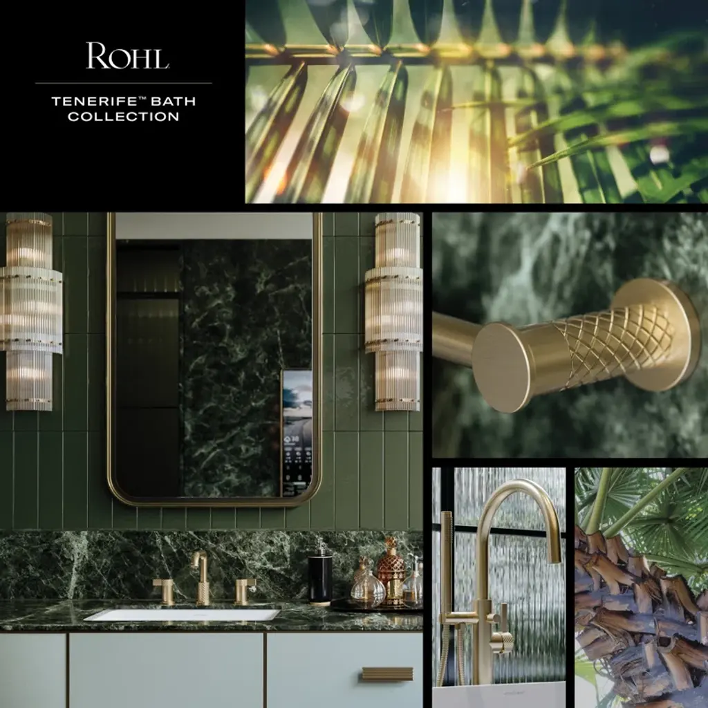 The symbol of the tranquil Canary Islands is a majestic palm tree, reaching as much as 65 feet, with a crown of leaves spanning all around. Tenerife, the largest of the islands, is host to the majority of these exotic, native palms. The Tenerife™ Bath Collection captures their tropical beauty through intricate details. The fine crosshatching that adorns the handles and base mirrors the lush diamond shape on the palm’s trunk. Circular accents on the spout complement the striking effect. Tenerife captures the feeling of a faraway isle in a physical form.