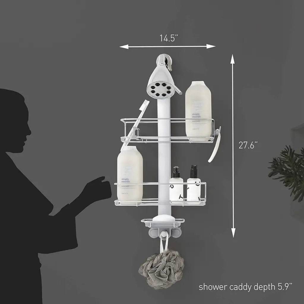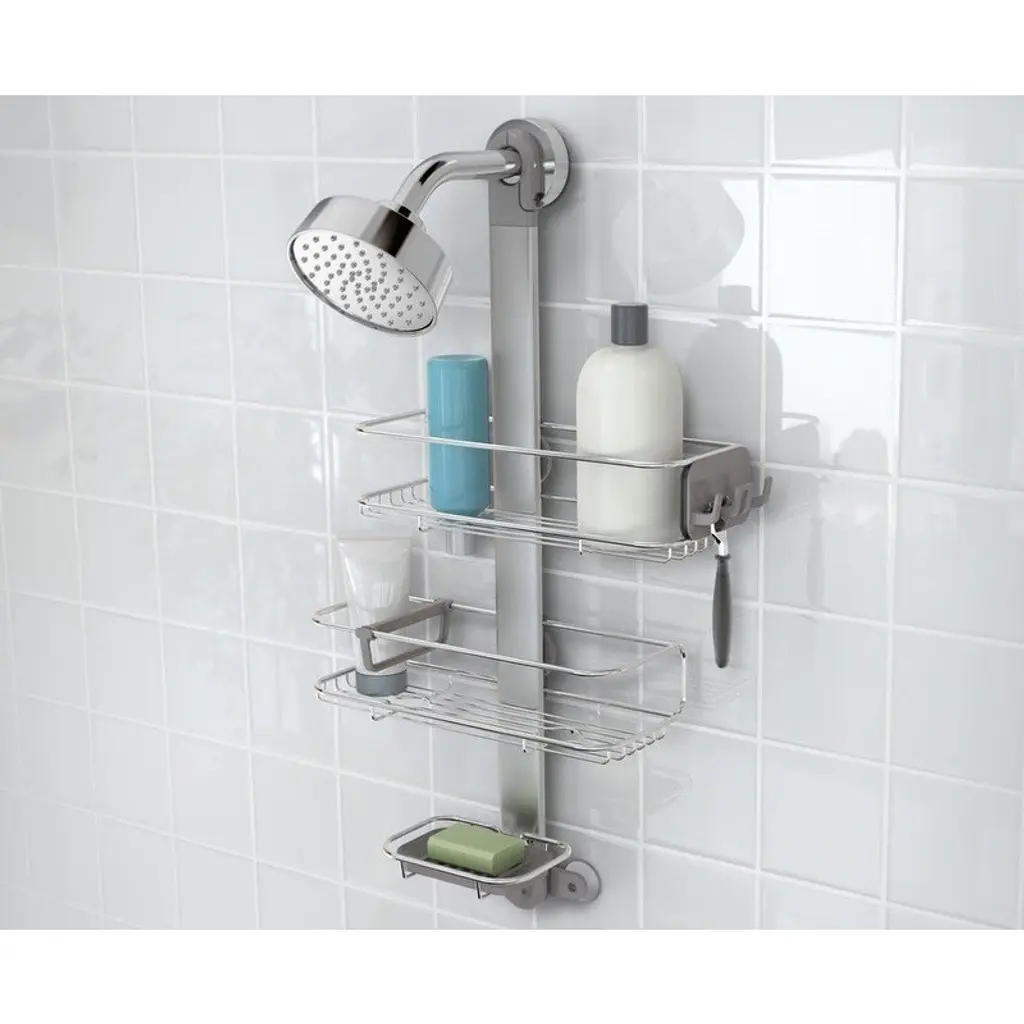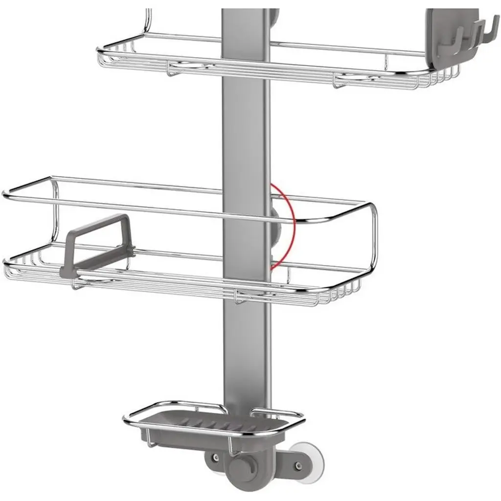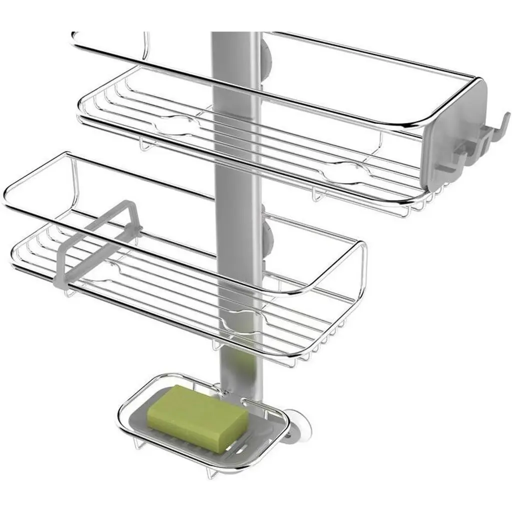 4-Tier Space-Saving Shower Storage: Includes four adjustable L-shaped baskets that fit perfectly in the corner of your shower. Ideal for organizing bath essentials, including taller shampoo bottles and soaps, each basket holds up to 7.5 lbs.Stylish and Rust-Resistant Shower Caddy: Featuring a sleek satin nickel finish, this corner shower caddy resists rust and corrosion, adding both modern style and exceptional durability to your bath or shower space for years of reliable use.Quick-Drying Wire Shelves: The open wire design of this shower organizer prevents water buildup, allowing your items to dry quickly and remain clean and fresh. Easy to maintain – simply wipe down with a damp cloth regularly for effortless upkeep.Efficient Shower Organization: Keep your bathroom clutter-free with this versatile shower rack. Built-in hooks, razor holders, and extra baskets ensure everything from washcloths to razors and bath accessories is organized and accessible.Easy, Tool-Free Installation: This adjustable tension pole shower caddy fits showers from 60 to 97 inches high. The no-tools-required assembly ensures a secure, wobble-free fit in any standard shower space with easy setup and reliable stability.