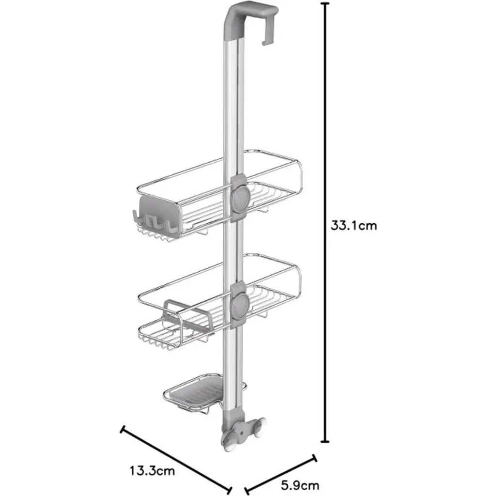 4-Tier Space-Saving Shower Storage: Includes four adjustable L-shaped baskets that fit perfectly in the corner of your shower. Ideal for organizing bath essentials, including taller shampoo bottles and soaps, each basket holds up to 7.5 lbs.Stylish and Rust-Resistant Shower Caddy: Featuring a sleek satin nickel finish, this corner shower caddy resists rust and corrosion, adding both modern style and exceptional durability to your bath or shower space for years of reliable use.Quick-Drying Wire Shelves: The open wire design of this shower organizer prevents water buildup, allowing your items to dry quickly and remain clean and fresh. Easy to maintain – simply wipe down with a damp cloth regularly for effortless upkeep.Efficient Shower Organization: Keep your bathroom clutter-free with this versatile shower rack. Built-in hooks, razor holders, and extra baskets ensure everything from washcloths to razors and bath accessories is organized and accessible.Easy, Tool-Free Installation: This adjustable tension pole shower caddy fits showers from 60 to 97 inches high. The no-tools-required assembly ensures a secure, wobble-free fit in any standard shower space with easy setup and reliable stability.