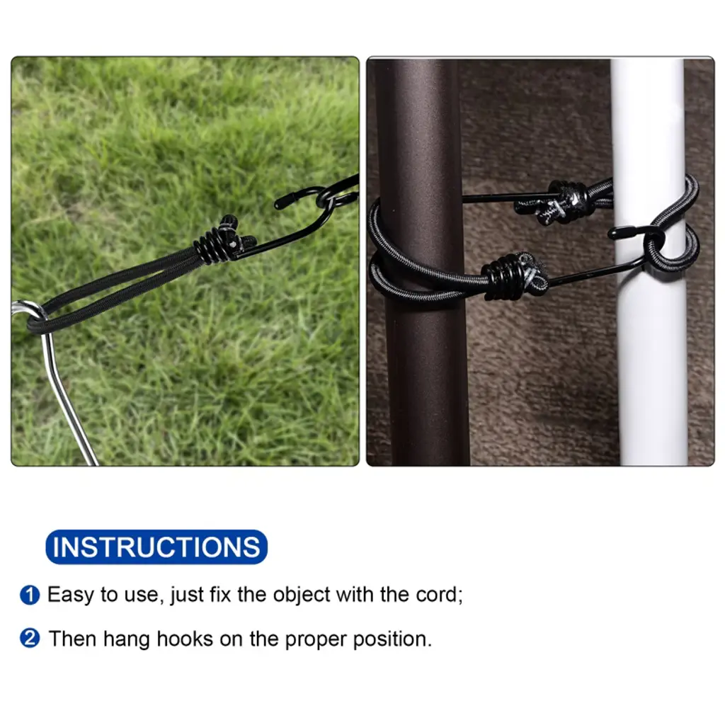 Unique Bargains Camping Outdoor Tent Elastic Rope With Hooks Black 6 Pcs 8 Inch