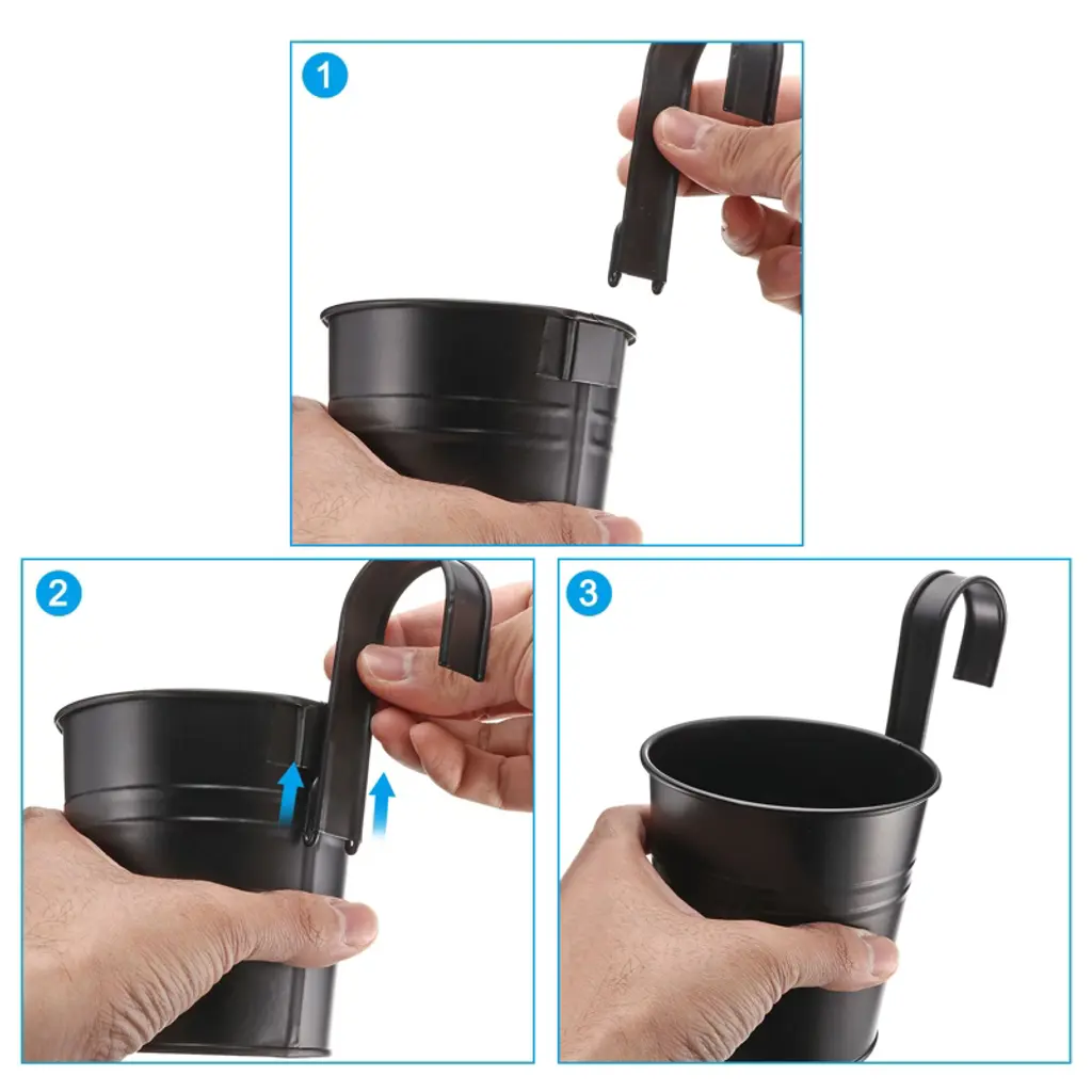 These versatile flower holders can be used with a variety of plants, such as herbs, dried flowers, silk flowers, succulents, and potted plants. Flower buckets can be easily installed on balconies, window, iron railings, fences and indoors. Add a splash of color to your balcony railing or garden fence with these attractive flower buckets. Made of metal material, it has good fastness and durability, a colorful finish, beautiful, versatile, anti-rust and for long-lasting use. Each mini pail features a reinforced handle for easy hanging decoration. After removing the detachable hook of the flower bucket, the bucket can be used as a desktop storage container or pen holder. Easy to install, just connect the detachable hook to the corresponding interface of the flower bucket, and it can be hung anywhere you need to decorate it. This metal flower bucket is a mini version. Please know the size before purchasing. The hook is disassembled for transportation, you need to install the iron bucket yourself after you get Metal Bucket Flower Pots.
