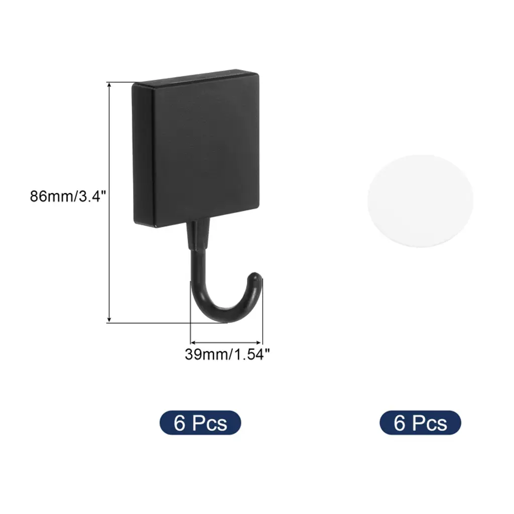 Unique Bargains Square Plastic Adhesive Removable Waterproof Wall Towel Hook 6 Pcs Black