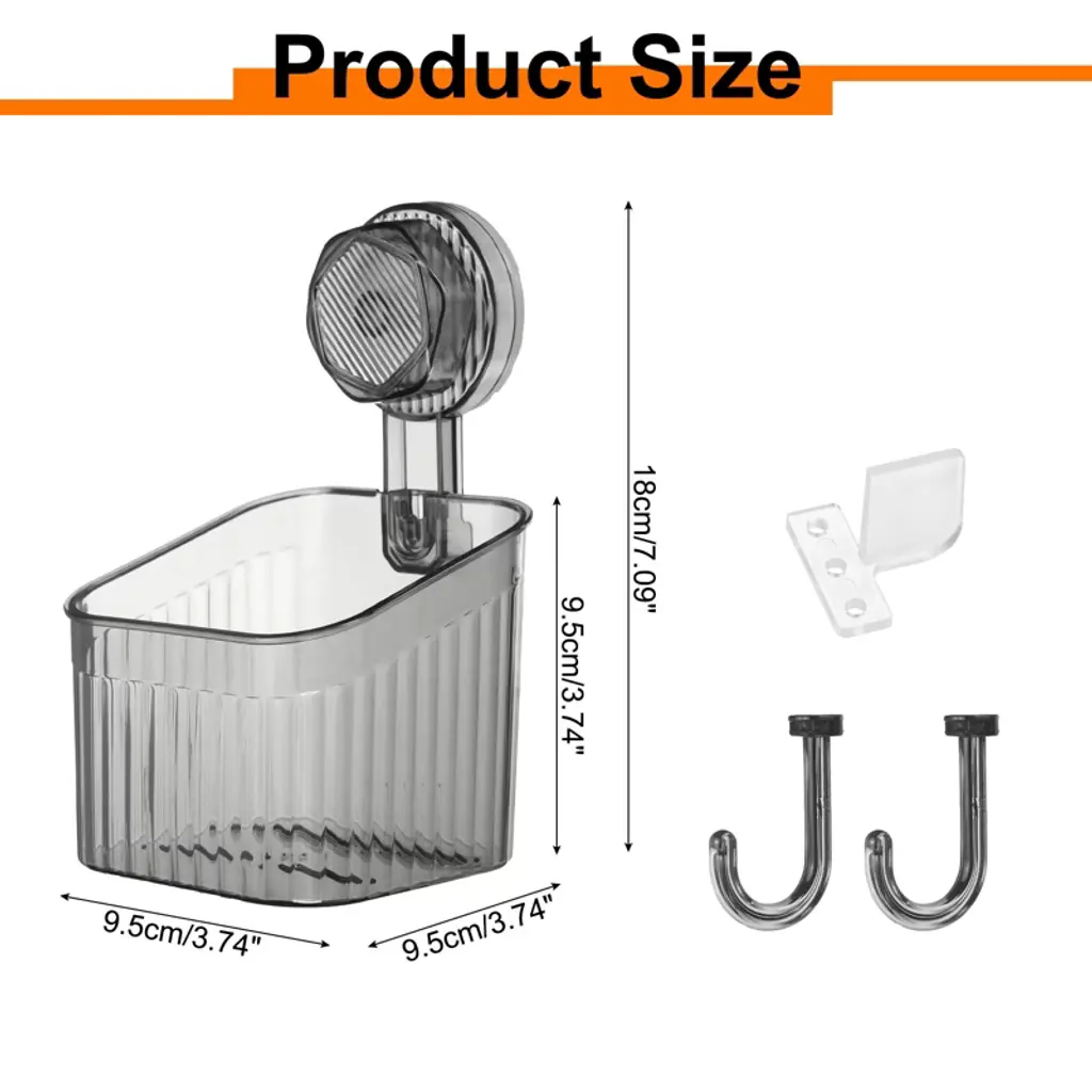 This suction cup shower caddy features a robust design made from thickened PET material, providing durability and a strong load-bearing capacity. It can hold up to 55 pounds without any risk of falling. The caddy is equipped with a raised guardrail to prevent items from tipping over and wide openings for easy access. Drainage holes on the base aid in quick drying, while movable hooks at the bottom enhance versatility for hanging various items. Installation is simple and requires no drilling, screws, or glue, making it easy to set up on smooth, dry surfaces and easy to remove without leaving traces. This organizer is suitable for multiple surfaces, including tiles, glass, and polished metals, making it ideal for shampoo, shower gel, cosmetics, and more, ensuring a practical storage solution for both bathroom and kitchen essentials.