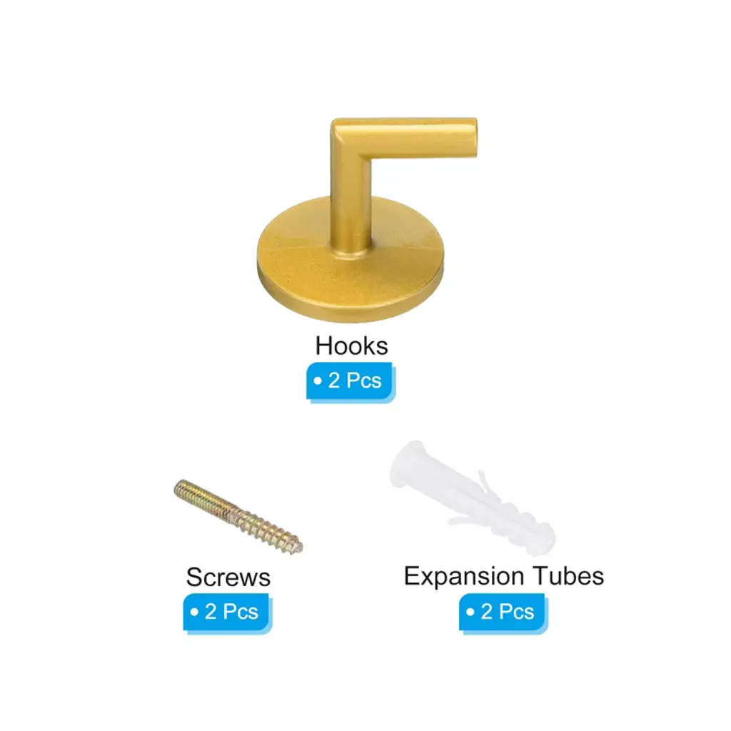 Unique Bargains Zinc Alloy Wall Mounted Screw Hooks Rust Resistant Curtain Holdback 2 Pcs Gold