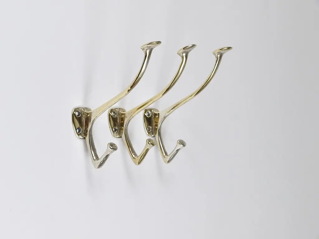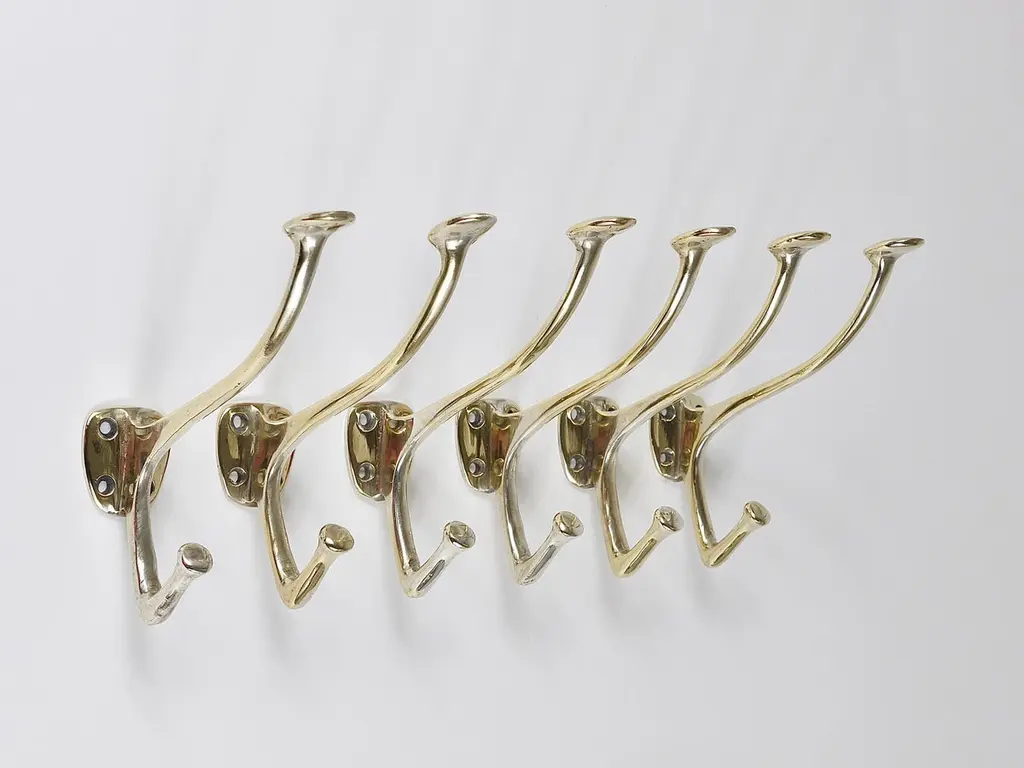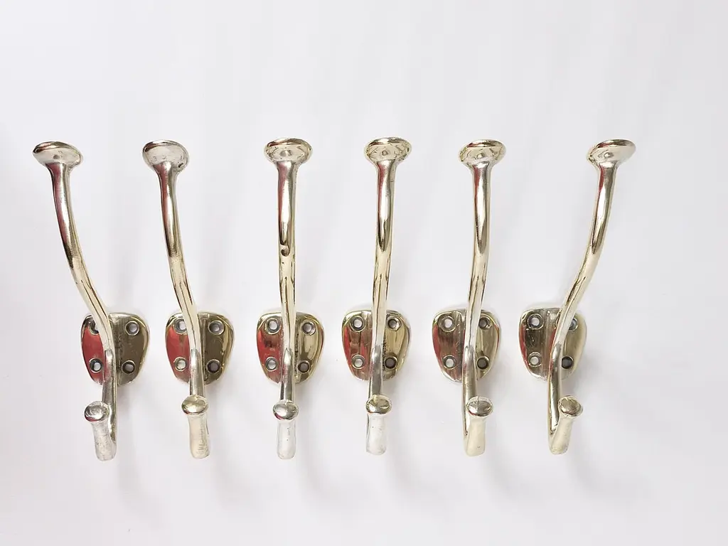 Up To 6 Adolf Loos Art Nouveau Nickel Brass Wall Hooks Café Capua Vienna, 1900s