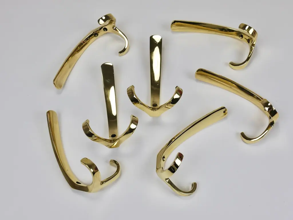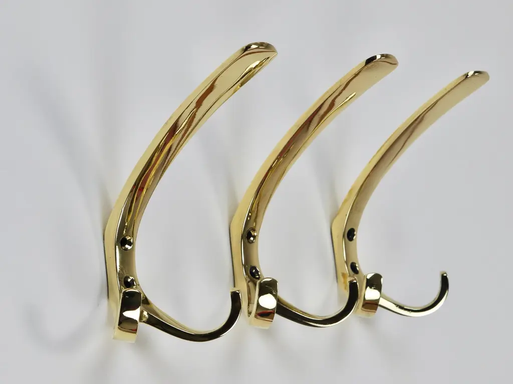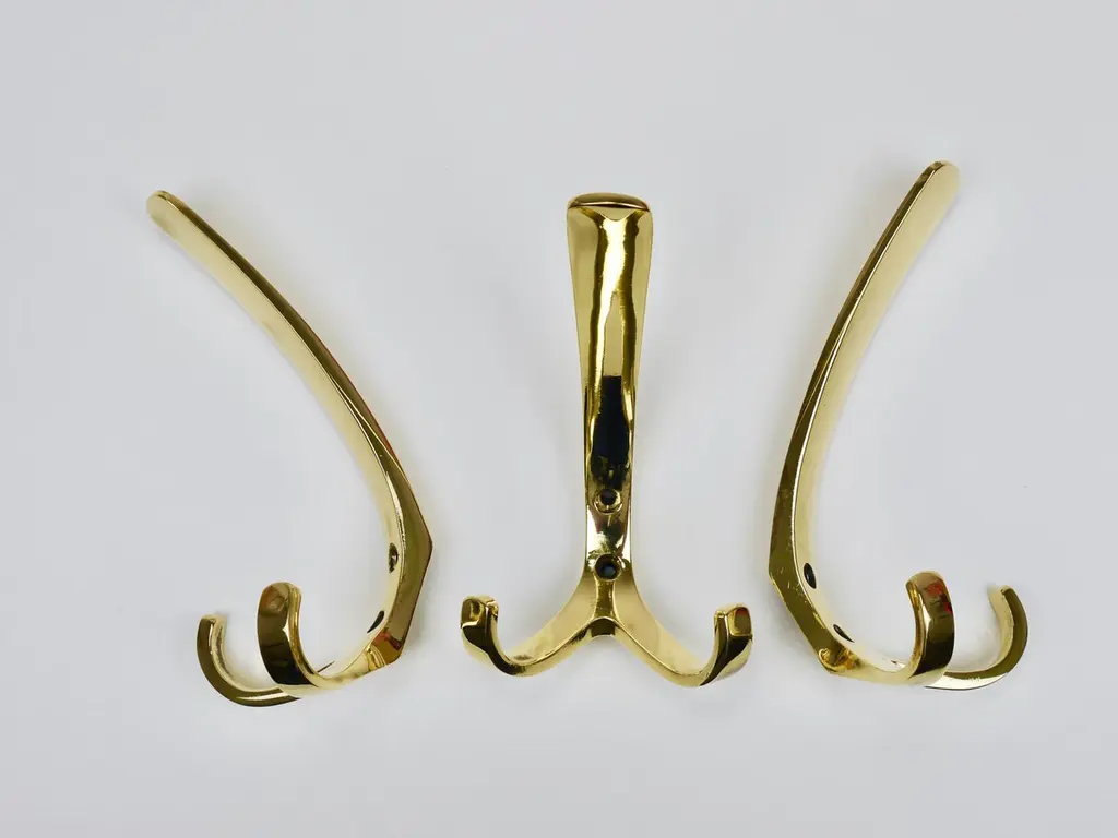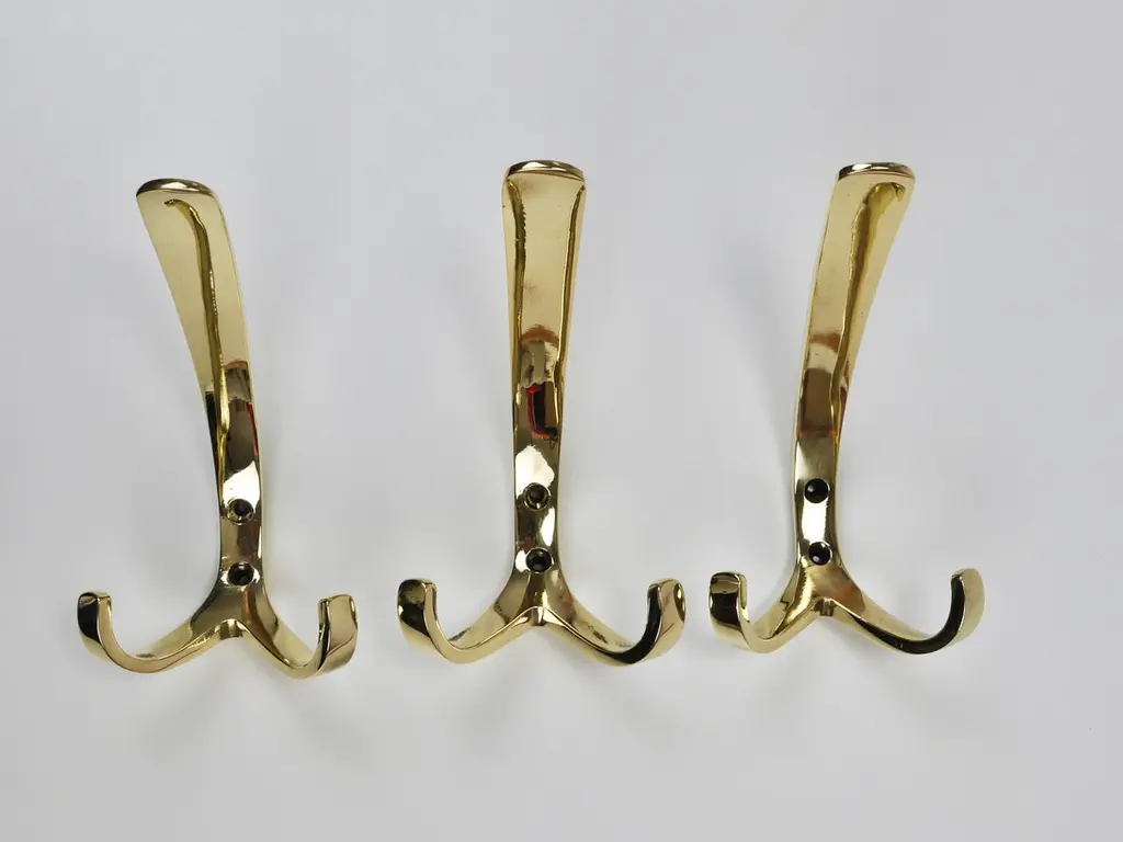 Up To 7 Herta Baller Mid-Century Brass Coat Double Wall Hooks, Vienna, 1950s