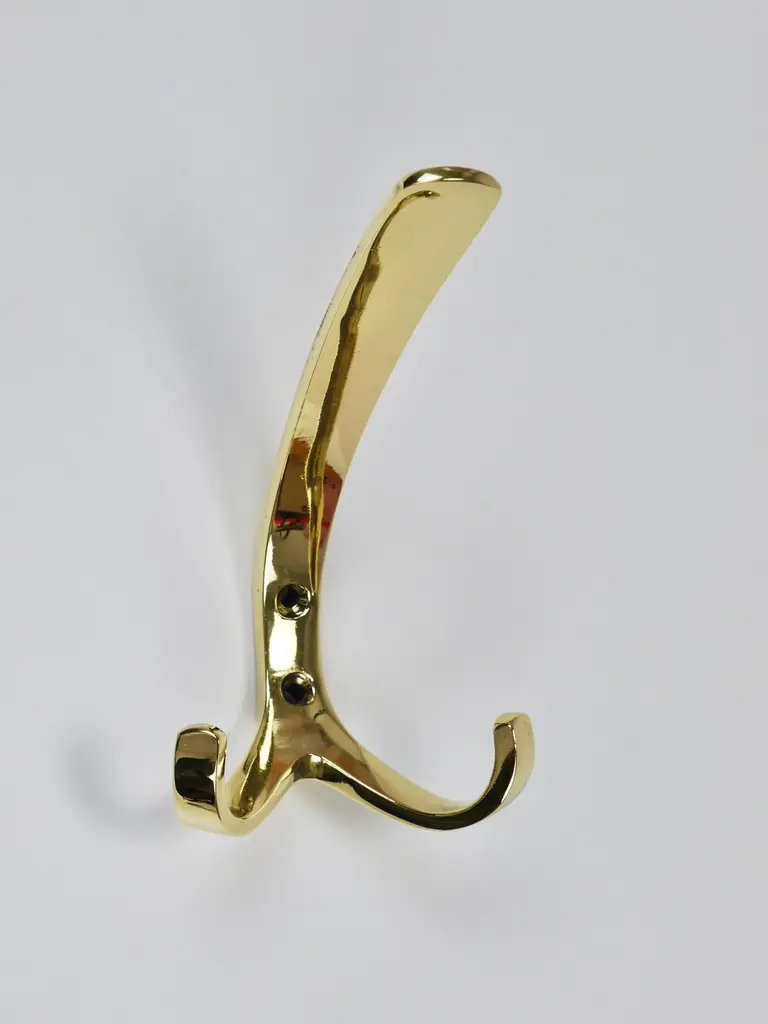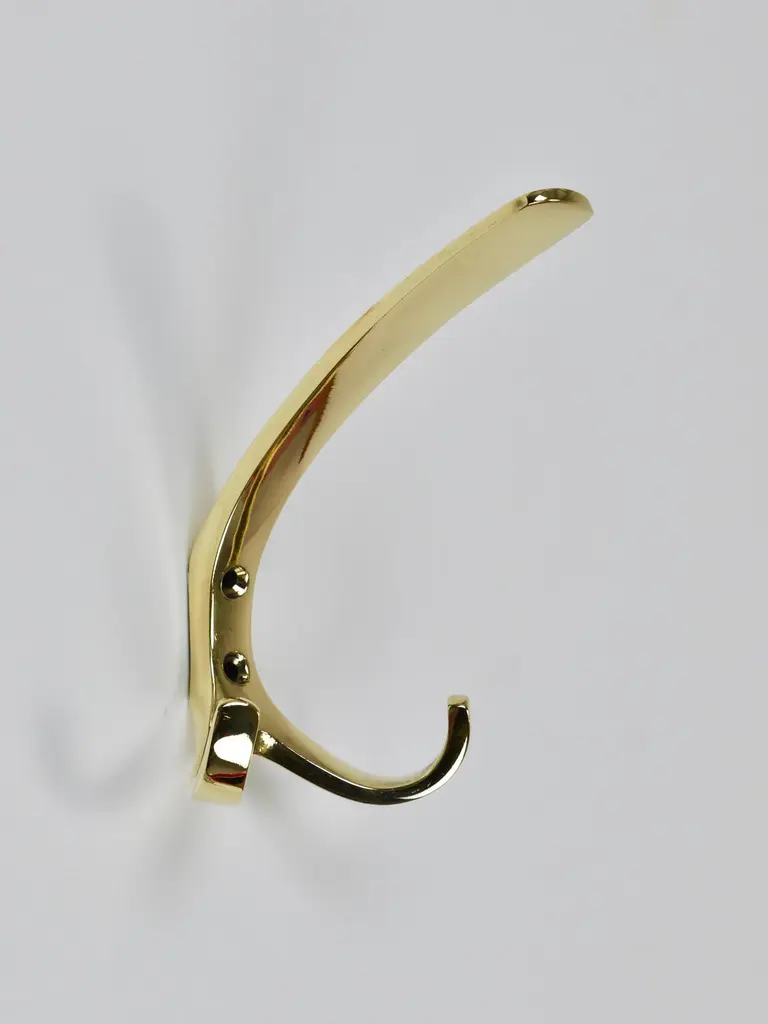 Up to 7 identical and beautifully crafted Austrian modernist wall-mounted coat hooks, sold and priced individually. Designed and executed in the 1950s by Hertha Baller in Vienna, Austria. Made of solid brass, these hooks have been carefully hand-polished, resulting in a rich, warm shine. They are in very good condition, showing only minimal signs of age.Dimensions:Height: 6" (15 cm)Width: 3" (7.5 cm)Depth: 4.5" (11.5 cm)Price is per piece.