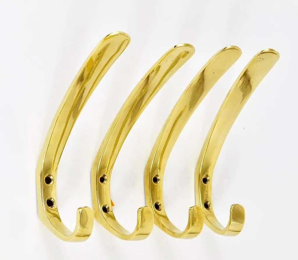 Up To Four Mid-Century Brass Wall Coat Hooks By Herta Baller, Austria, 1950s