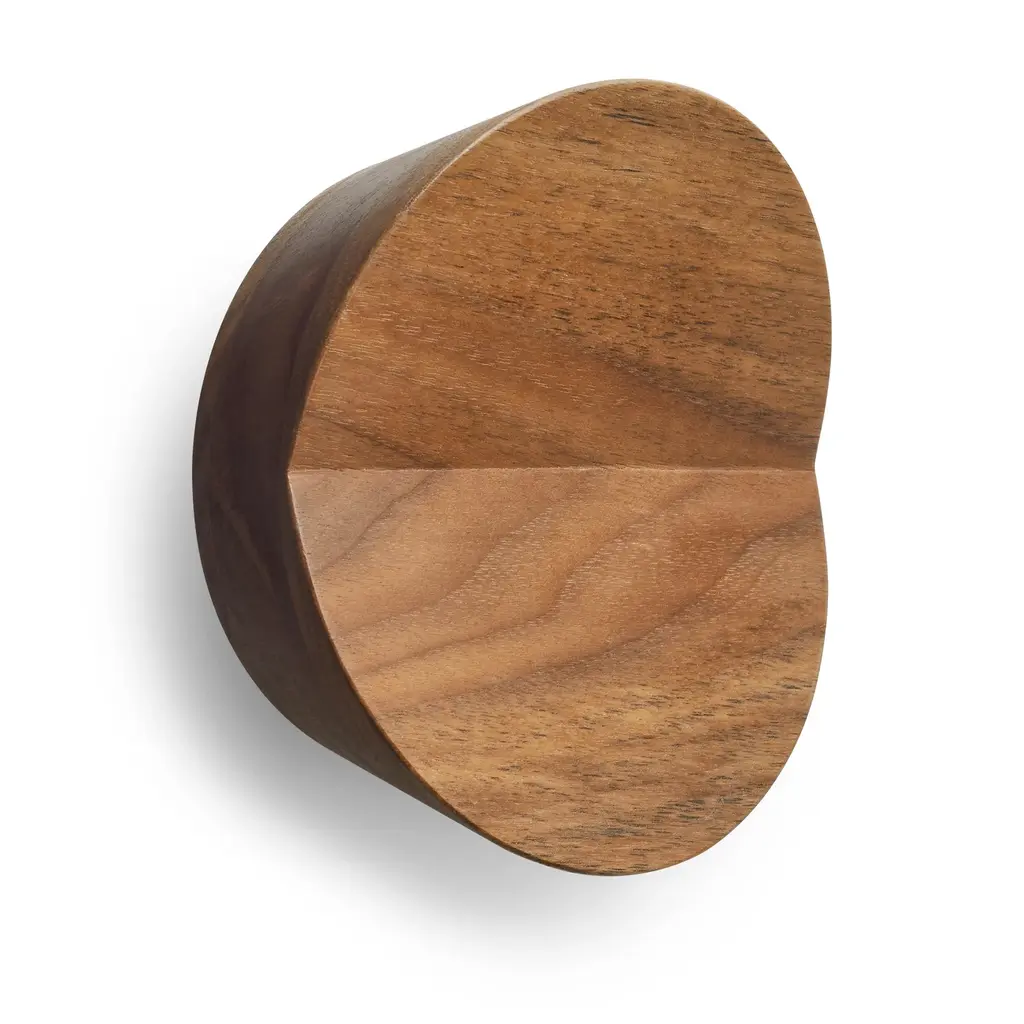 Maintain decorum throughout your space. Simple and inconspicuous solid wood hooks double as beautiful wall art and a dashing spot to hang all your clothing accoutrements. Gentle center crease adds visual appeal and functional finesse. Available in three shapes.