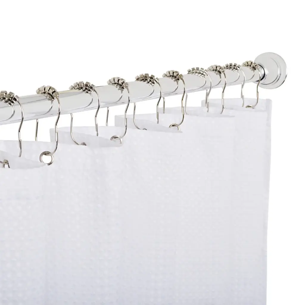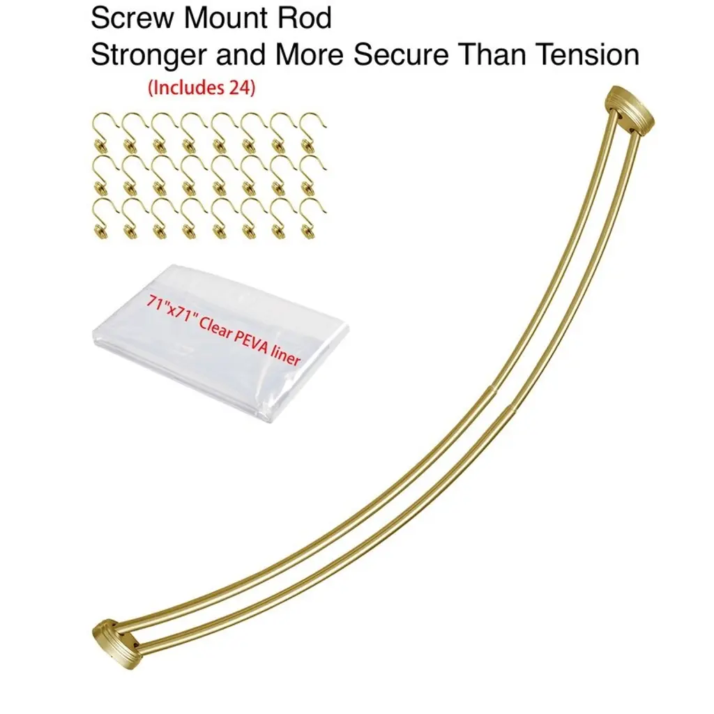 Product contains one 3G 71x71 inch clear PEVA shower liner & 12pcs steel shower hooks. 5 Color Options for Shower Hooks: Matt Black, Brushed Nickel, Chrome, Oil Rubbed Bronze & Gold. CLEAR SHOWER LINER: Our clear shower curtain liners are a great way to keep water from splashing on your shower curtain or anywhere else in your bathroom. Our shower liners are made from clear, durable PEVA material that can be used as a as a standalone shower liner or with a shower curtain. COMPLEMENTS ANY BATHROOM OR SHOWER: Our transparent shower curtains are a wonderful complement to any bathroom. The shower liner curtain 's clear material is a great choice for the bathroom because it goes with everything and allows light to pass through. These clear bathroom liners can add function to your bathroom without compromising its design. DURABLE AND RELIABLE: Our PEVA shower curtain liner is non-toxic, PVC- and chlorine-free, and does not give off a chemical smell. This shower curtain liner reduces curtain billowing. Its weighted hem helps with longevity and keeps your shower curtain in place throughout long-term use. EFFORTLESS MAINTENANCE: Our shower curtain liner is effortless to maintain and easy to use. Keeping your clear shower liner clean is easy, and the best part is that it will not only protect your shower curtain liner but also keep your bathroom looking fresh and clean. ABOUT US: UTOPIA ALLEY is a woman-owned and operated business. Our goal is to provide our customers with furniture, home decor, essentials and accessories made with expert craftsmanship. We believe in creating a stylish, comfortable space where you can relax, recharge, and feel inspired. Product Size: PEVA liner: 3G, 71x71". Shower hook: 1.5"x2.7", 1" space around shower rod.