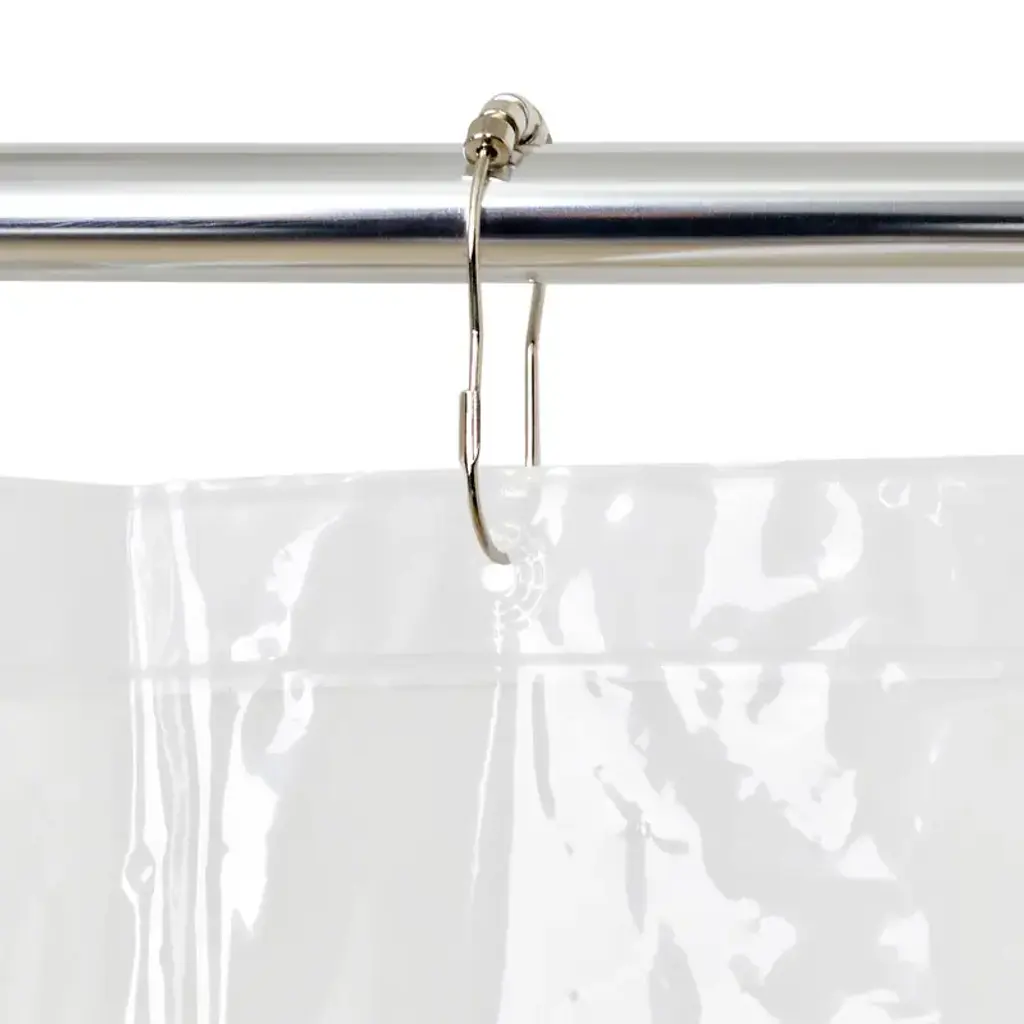 Product contains one 3G 71x71 inch clear PEVA shower liner & 12pcs steel shower hooks. 5 Color Options for Shower Hooks: Matt Black, Brushed Nickel, Chrome, Oil Rubbed Bronze & Gold. CLEAR SHOWER LINER: Our clear shower curtain liners are a great way to keep water from splashing on your shower curtain or anywhere else in your bathroom. Our shower liners are made from clear, durable PEVA material that can be used as a as a standalone shower liner or with a shower curtain. COMPLEMENTS ANY BATHROOM OR SHOWER: Our transparent shower curtains are a wonderful complement to any bathroom. The shower liner curtain 's clear material is a great choice for the bathroom because it goes with everything and allows light to pass through. These clear bathroom liners can add function to your bathroom without compromising its design. DURABLE AND RELIABLE: Our PEVA shower curtain liner is non-toxic, PVC- and chlorine-free, and does not give off a chemical smell. This shower curtain liner reduces curtain billowing. Its weighted hem helps with longevity and keeps your shower curtain in place throughout long-term use. EFFORTLESS MAINTENANCE: Our shower curtain liner is effortless to maintain and easy to use. Keeping your clear shower liner clean is easy, and the best part is that it will not only protect your shower curtain liner but also keep your bathroom looking fresh and clean. ABOUT US: UTOPIA ALLEY is a woman-owned and operated business. Our goal is to provide our customers with furniture, home decor, essentials and accessories made with expert craftsmanship. We believe in creating a stylish, comfortable space where you can relax, recharge, and feel inspired. Product Size: PEVA liner: 3G, 71x71". Shower hook: 1.5"x2.7", 1" space around shower rod.
