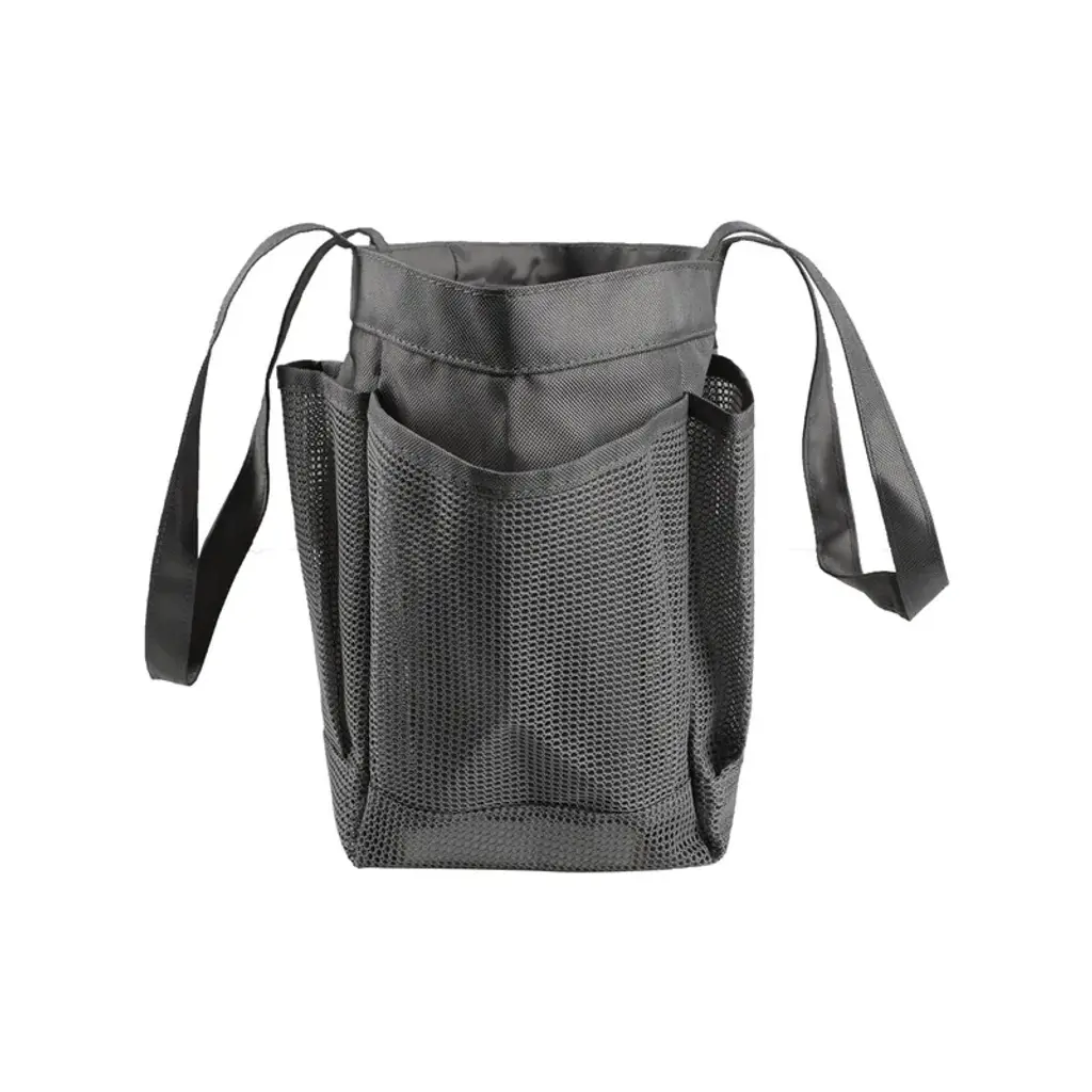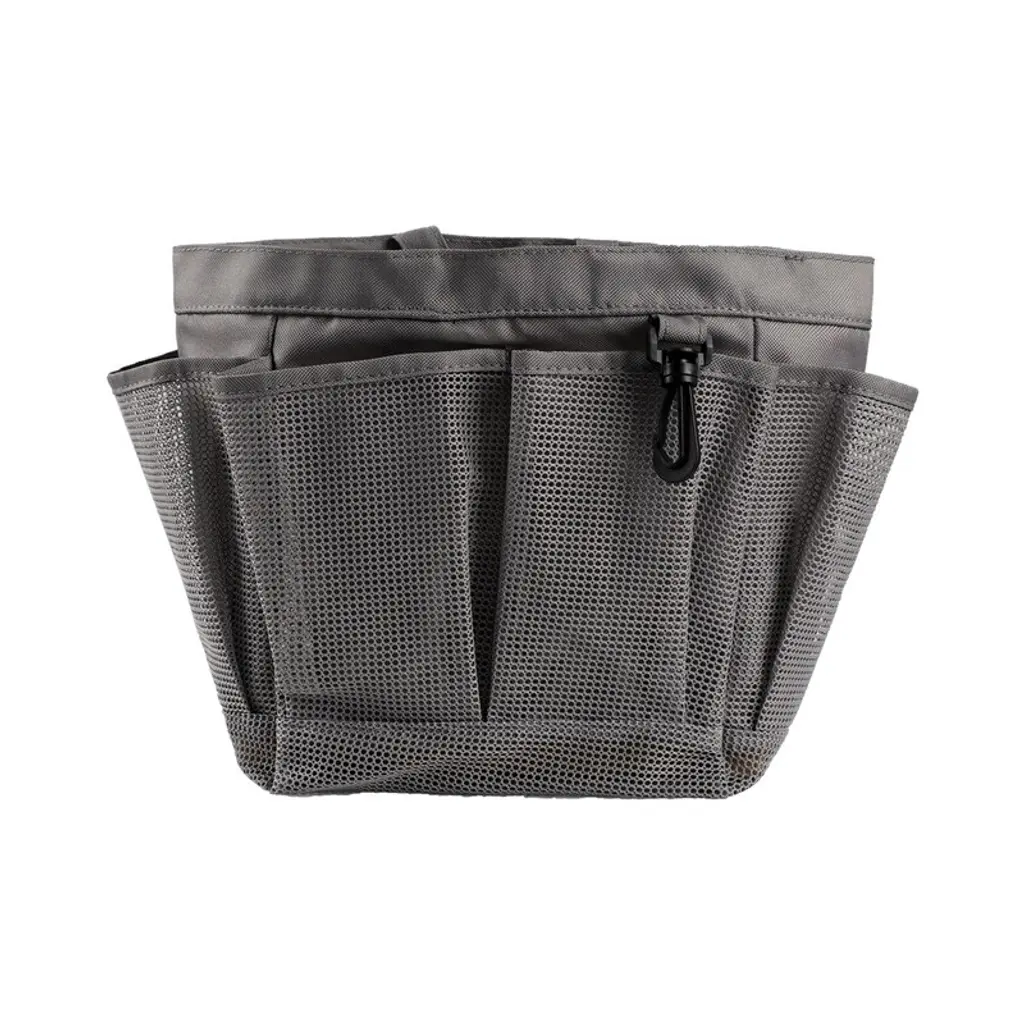 Utopia Alley Mesh Portable Shower Caddy - Quick Dry Shower Tote Bag, Includes Peva Shower Liner And Rustproof Shower Hooks, Gray - Brushed Nickel - 8*6*9"