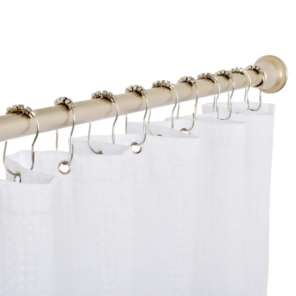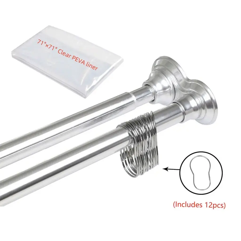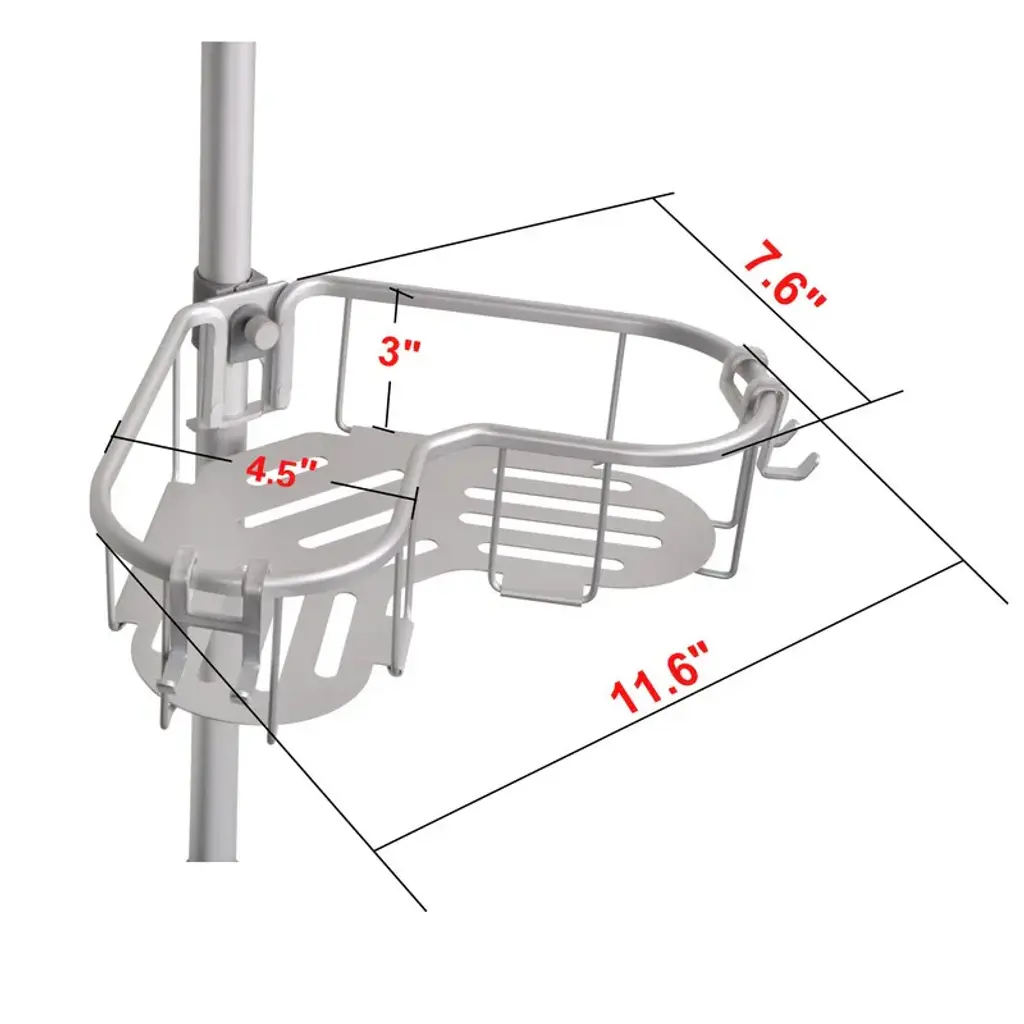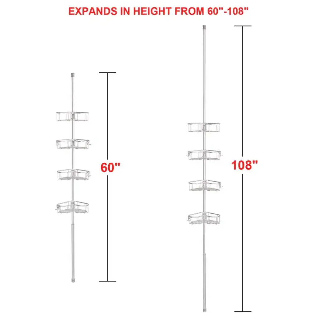 Two color options: Satin Chrome & Black. Product contains one 4 shelves pole caddy, one clear 3G 71x71 inch PEVA Shower Liner and 12pcs steel shower hooks. SUITABLE FOR ANY BATHROOM: Upgrade your bathroom organization with our aluminum rust-proof Shower Caddy Corner Tension Pole. This durable and sturdy shower caddy is made of rust-free materials and is built to last. Its design ensures long-lasting use, making it perfect for any bathroom. With this shower caddy, you can easily organize your shower essentials and maximize your space. Its corner tension pole design is a convenient way to keep your bathroom organized and matches any bathroom decor. Choose our reliable shower caddy for a clutter-free and stylish bathroom. PERFECT STORAGE SPACE - With adjustable and removable shelves! Easily adjust and cut the bar to fit heights of up to 5' or less and maximize your shower space. This heavy-duty corner tension pole shower caddy comes with four adjustable and removable shelves with drainage slots. The size of this pole is 60-108" tall and the baskets measure 11.6" in length x 7.6" in depth x 3" in height, making it the perfect size for all your shower essentials. SIMPLE SETUP: Utopia Alley's Corner Tension Pole Shower Caddy comes with all installation hardware for you to set up! All the necessary installation instructions and accessories are included, making setup and installation a breeze. With this convenient and easy-to-install shower caddy corner tension pole, you can enjoy hassle-free organization! MANY YEARS TO LAST: This shower caddy corner tension pole is made of sturdy and rust-proof material, so you can be sure it will remain rust-free and last for years to come. Enjoy an organized bathroom with this convenient and easy-to-install shower caddy corner tension pole! With its durable aluminum and rust-free construction, this shower caddy corner tension pole is perfect for any bathroom. ABOUT US: UTOPIA ALLEY is a woman-owned and operated business. Our goal is to provide our customers with furniture, home decor, bathroom essentials, and accessories made with expert craftsmanship for years to last. We believe in creating a stylish, comfortable space where you can relax, recharge, and feel inspired. Product Size: Pole Caddy: 60-108" H Shelves: 11.6" L x 7.6" D x 3" H. Shower hook: 1.9"x2.4", 1" space around shower rod. PEVA liner: 3G, 71x71".