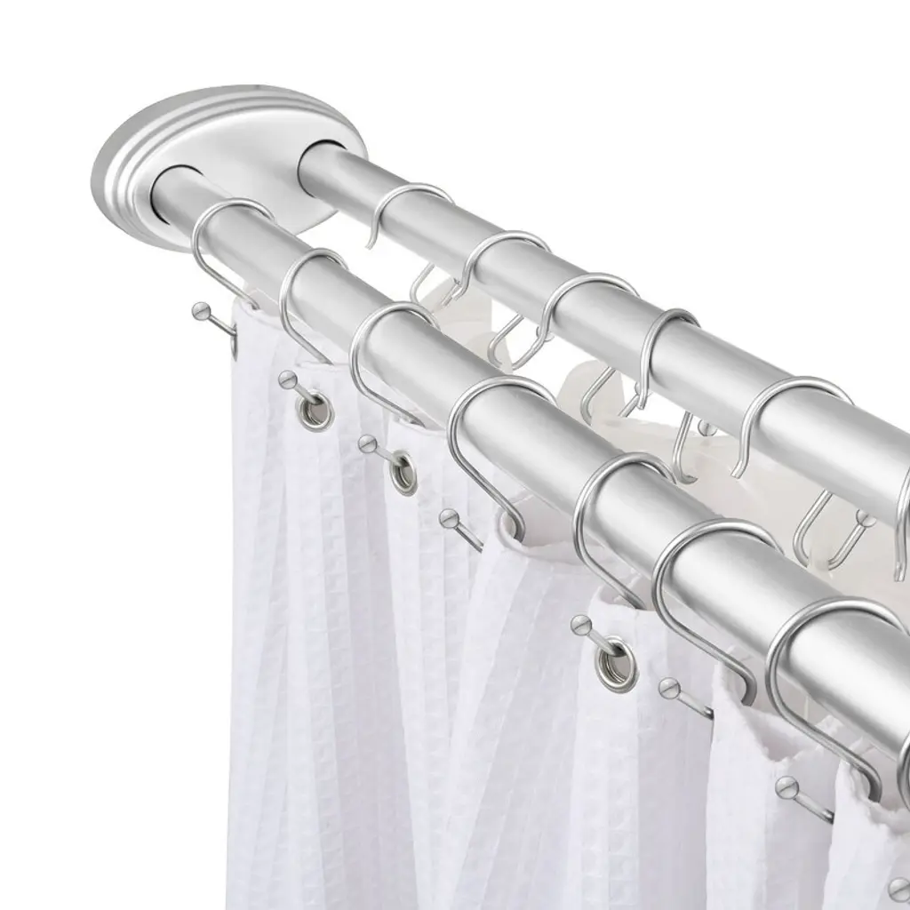 Upgrade your bathroom and create a serene shower space with Utopia Alley's double L shaped shower rods. It is perfect solution for showers of a variety of sizes. Choose from an array of finishes to perfect match your decor. Double L shaped shower rod come with 24 ring hooks for convenient hanging of shower curtains. The ring goes all the way on the rod without stopping. This double L-shaped shower rod is reversible, you can install it in the direction you want. The double L-shaped design makes the screw in shower curtain rod perfect for corner bathtubs and 90-degree shower spaces. It can enclose rectangular or square shower areas both indoors and outdoors. Suitable for use in bathtubs, shower enclosures, outdoor showers, closets, dressing rooms, and more. Size: 72" L x 31.7" W outer L-shape, 68" L x 28" inner L-shape. Its adaptable feature guarantees a precise fit in your bathroom space, providing an assurance of style and functionality. Elevate your bathroom's aesthetic with a shower rod that adjusts to your needs without sacrificing form or function. ABOUT US: UTOPIA ALLEY is a USA/woman-owned and operated business, you can shop with confidence for home decor, furniture bathroom accessories, and products with tailored needs. We believe in creating a stylish, comfortable space where you can relax, recharge, and feel inspired. Our products are expertly crafted to look visually beautiful, sophisticated, and constructed to last you for many years.