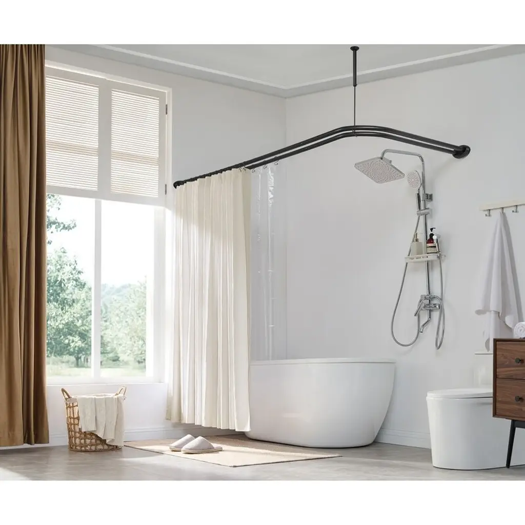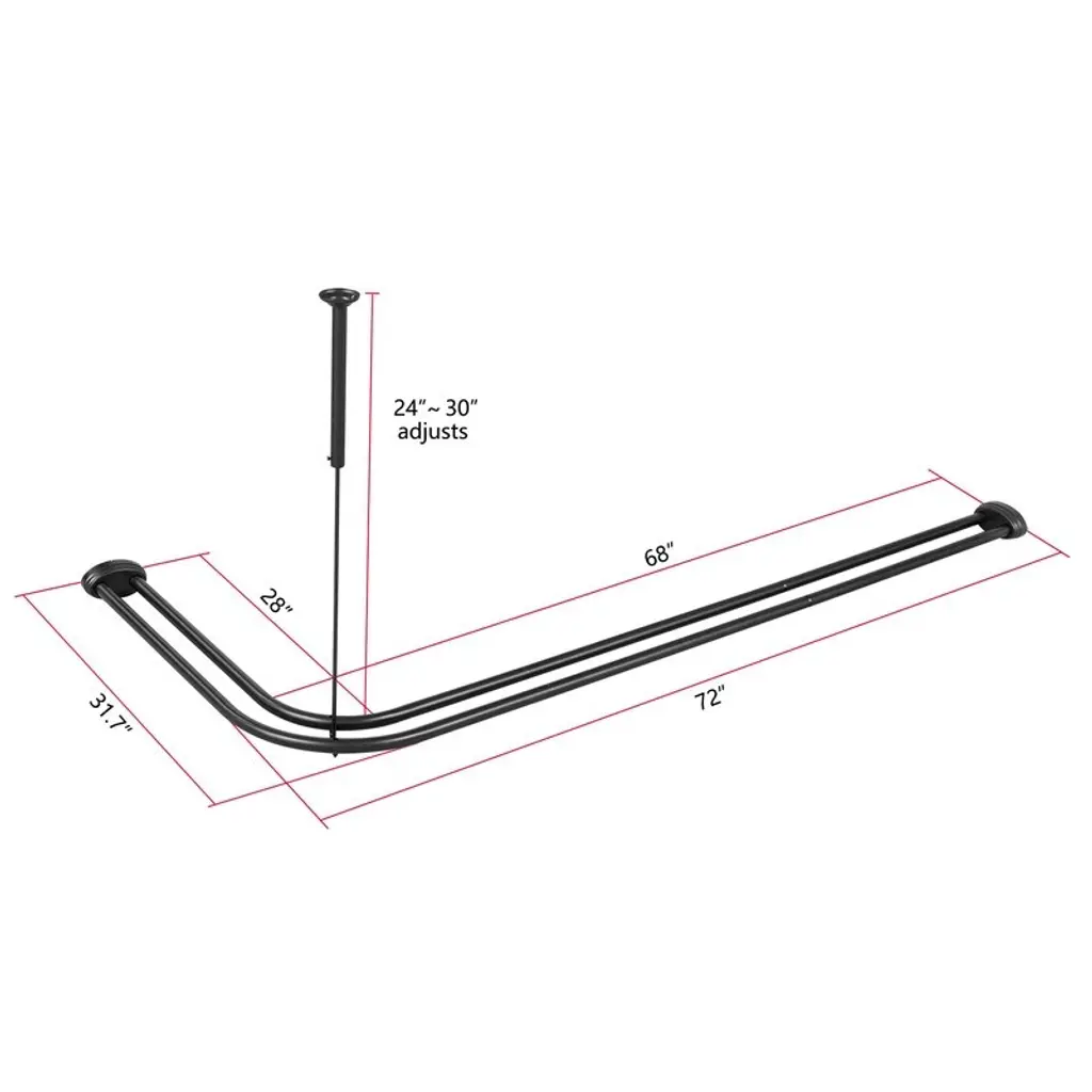 Upgrade your bathroom and create a serene shower space with Utopia Alley's double L shaped shower rods. It is perfect solution for showers of a variety of sizes. Choose from an array of finishes to perfect match your decor. Double L shaped shower rod come with 24 ring hooks for convenient hanging of shower curtains. The ring goes all the way on the rod without stopping. This double L-shaped shower rod is reversible, you can install it in the direction you want. The double L-shaped design makes the screw in shower curtain rod perfect for corner bathtubs and 90-degree shower spaces. It can enclose rectangular or square shower areas both indoors and outdoors. Suitable for use in bathtubs, shower enclosures, outdoor showers, closets, dressing rooms, and more. Size: 72" L x 31.7" W outer L-shape, 68" L x 28" inner L-shape. Its adaptable feature guarantees a precise fit in your bathroom space, providing an assurance of style and functionality. Elevate your bathroom's aesthetic with a shower rod that adjusts to your needs without sacrificing form or function. ABOUT US: UTOPIA ALLEY is a USA/woman-owned and operated business, you can shop with confidence for home decor, furniture bathroom accessories, and products with tailored needs. We believe in creating a stylish, comfortable space where you can relax, recharge, and feel inspired. Our products are expertly crafted to look visually beautiful, sophisticated, and constructed to last you for many years.