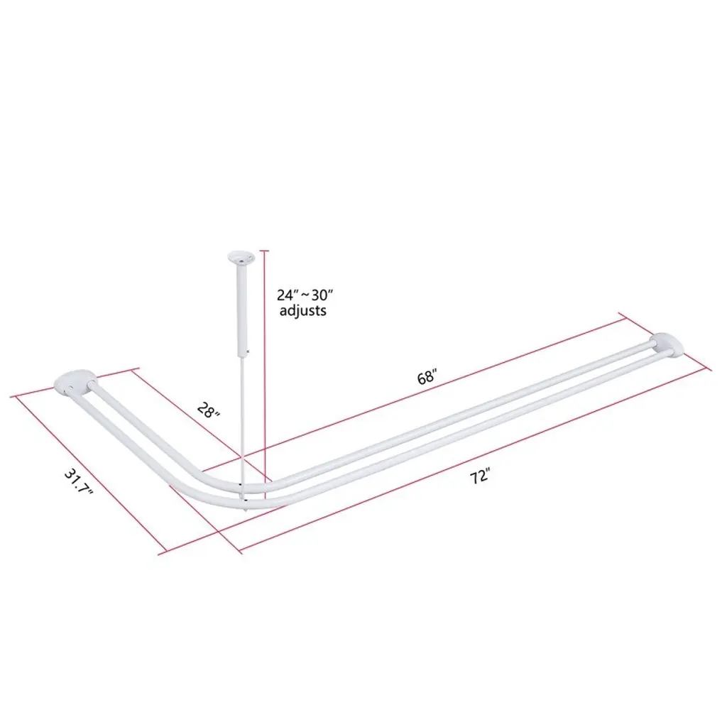 Utopia Alley Rustproof Aluminum Double L Shaped Shower Curtain Rod 72" L X 31.7" W, With 24 Shower Hooks Included, Wall Mounted - White