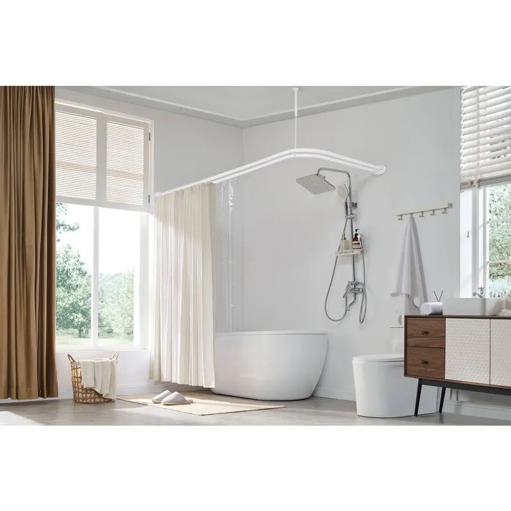 Upgrade your bathroom and create a serene shower space with Utopia Alley's double L shaped shower rods. It is perfect solution for showers of a variety of sizes. Choose from an array of finishes to perfect match your decor. Double L shaped shower rod come with 24 ring hooks for convenient hanging of shower curtains. The ring goes all the way on the rod without stopping. This double L-shaped shower rod is reversible, you can install it in the direction you want. The double L-shaped design makes the screw in shower curtain rod perfect for corner bathtubs and 90-degree shower spaces. It can enclose rectangular or square shower areas both indoors and outdoors. Suitable for use in bathtubs, shower enclosures, outdoor showers, closets, dressing rooms, and more. Size: 72" L x 31.7" W outer L-shape, 68" L x 28" inner L-shape. Its adaptable feature guarantees a precise fit in your bathroom space, providing an assurance of style and functionality. Elevate your bathroom's aesthetic with a shower rod that adjusts to your needs without sacrificing form or function. ABOUT US: UTOPIA ALLEY is a USA/woman-owned and operated business, you can shop with confidence for home decor, furniture bathroom accessories, and products with tailored needs. We believe in creating a stylish, comfortable space where you can relax, recharge, and feel inspired. Our products are expertly crafted to look visually beautiful, sophisticated, and constructed to last you for many years.