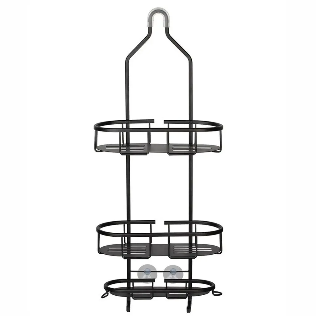 Utopia Alley Rustproof Aluminum Shower Caddy Organizer With 3 Shelves, Includes Shower Rod, Shower Liner And Shower Hooks, Black - Matt Black - 11*5*26.5"