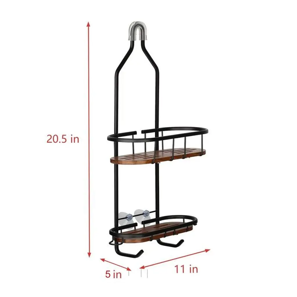 Utopia Alley Rustproof Teak Overhead Shower Caddy Organizer With 2 Shelves - Includes Shower Liner And Shower Hooks, Black - Matt Black - 11*5*20.5"