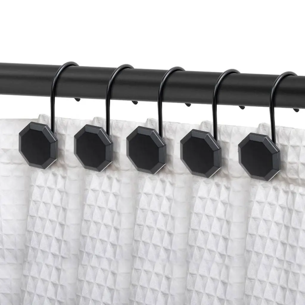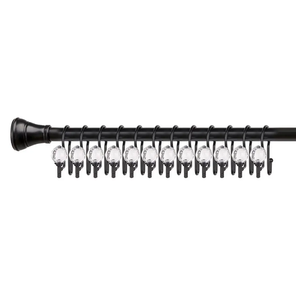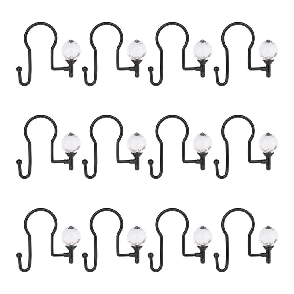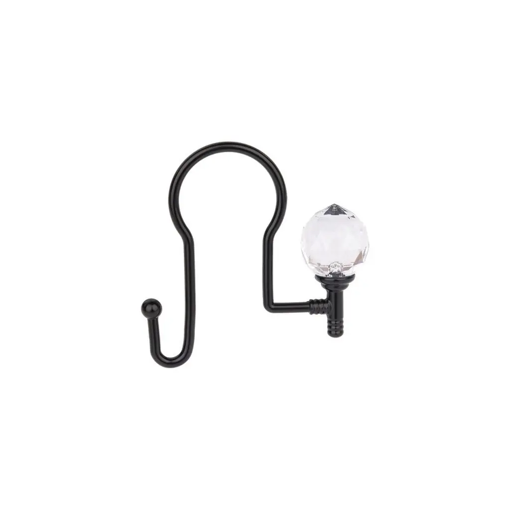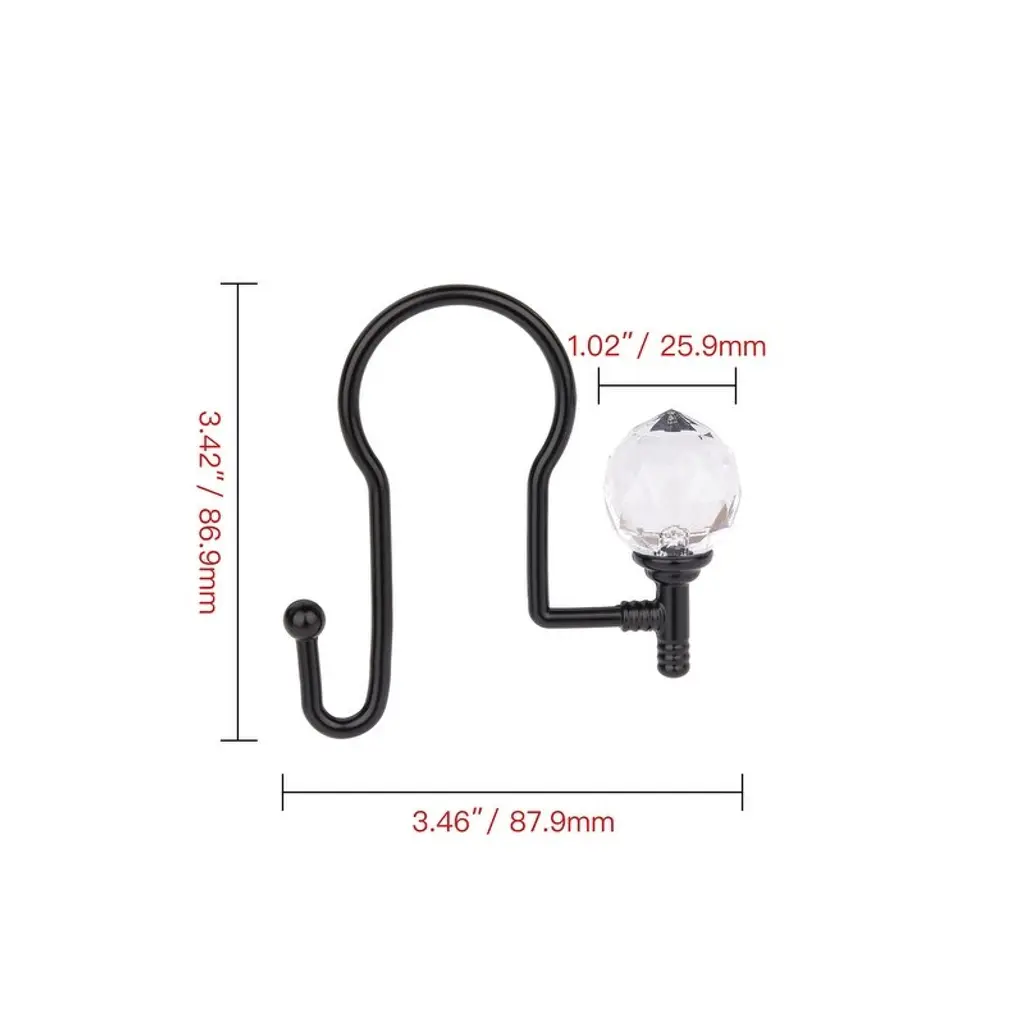 Utopia Alley Rustproof Zinc Double Shower Curtain Hooks For Bathroom, Crystal Design, Set Of 12 - Matt Black