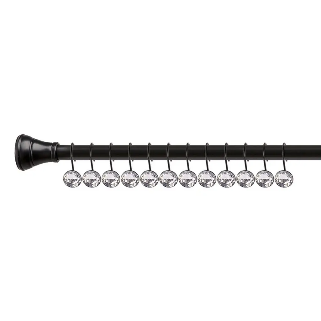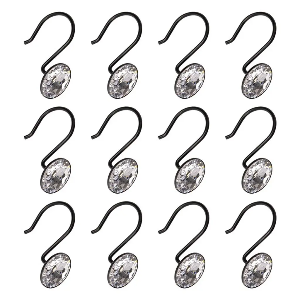Utopia Alley Shower Curtain Hooks For Bathroom, Rust Resistant Shower Curtain Hooks Rings, Crystal Design, Set Of 12 - Matt Black