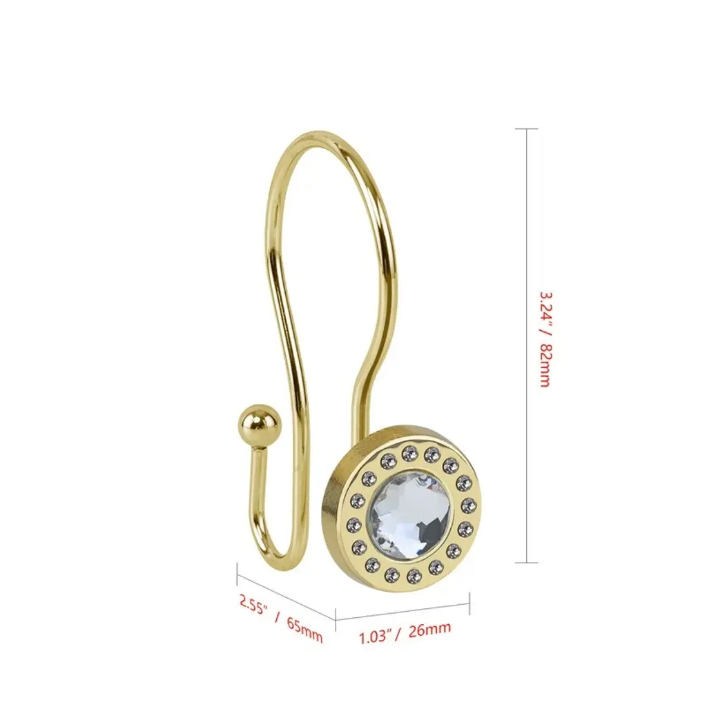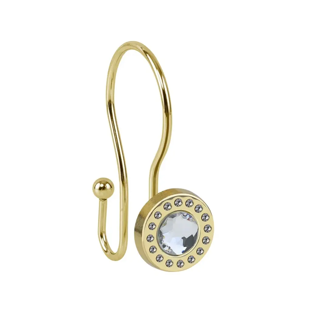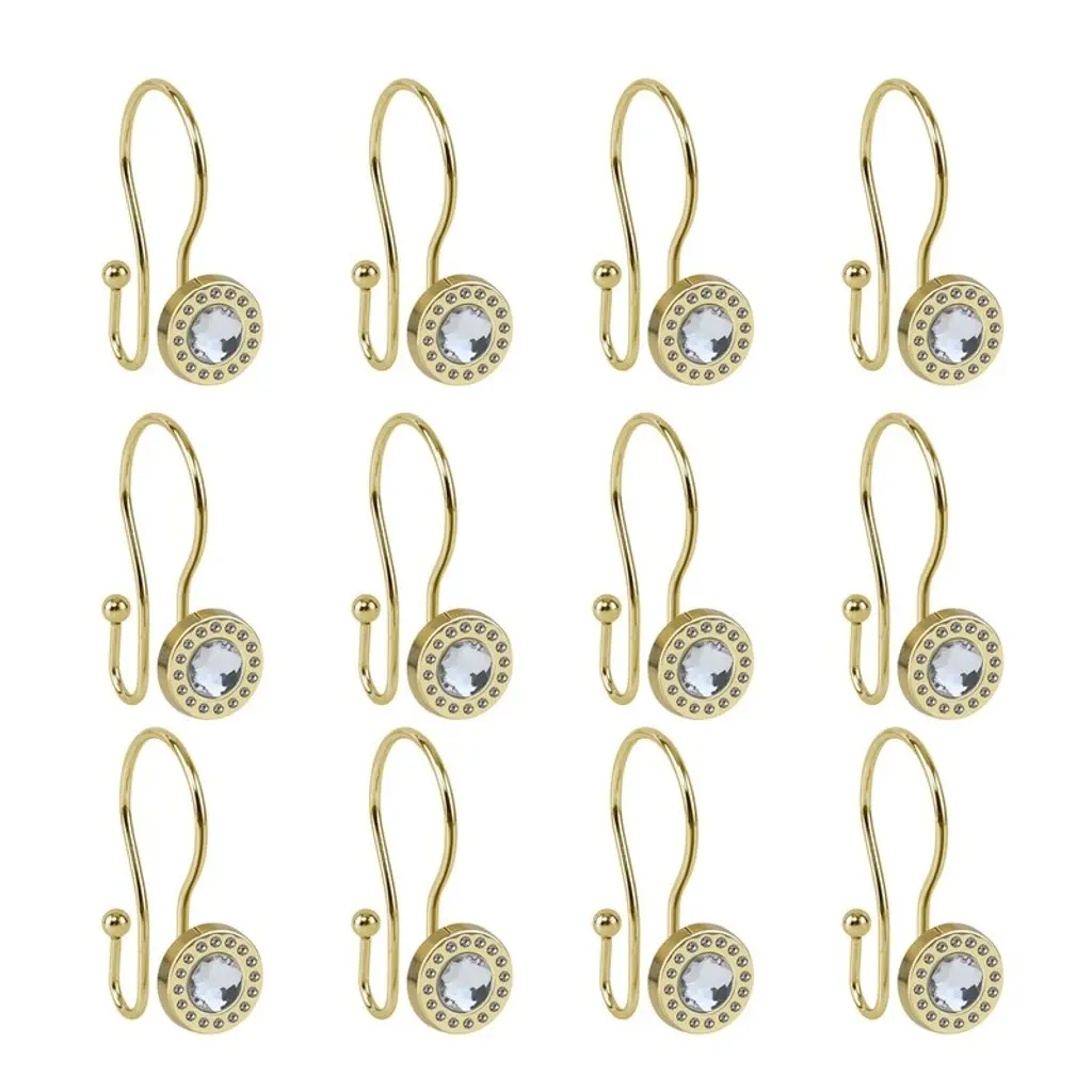 Utopia Alley Shower Hooks, Double Shower Curtain Hooks For Bathroom, Crystal Design, Set Of 12 - Gold